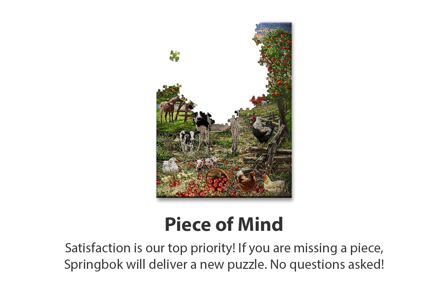 - MISSING PIECE NO WORRY WARRANTY - All Springbok Puzzles are covered with our satisfaction guarantee on materials and craftmanship