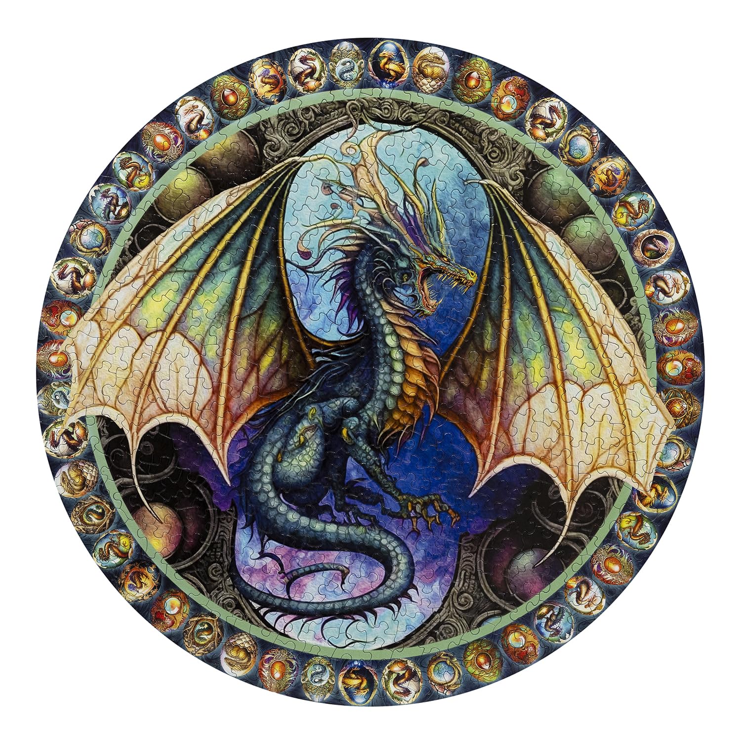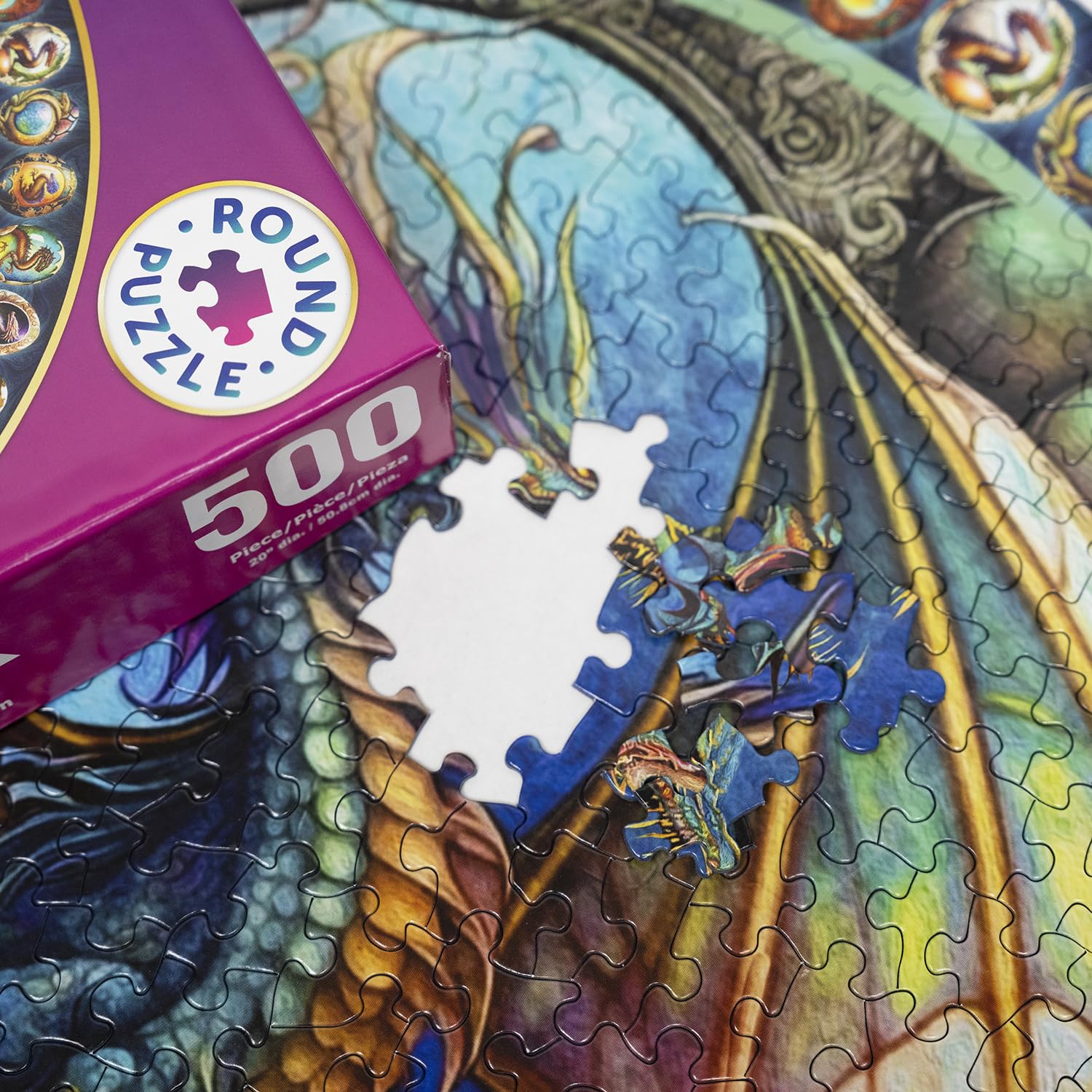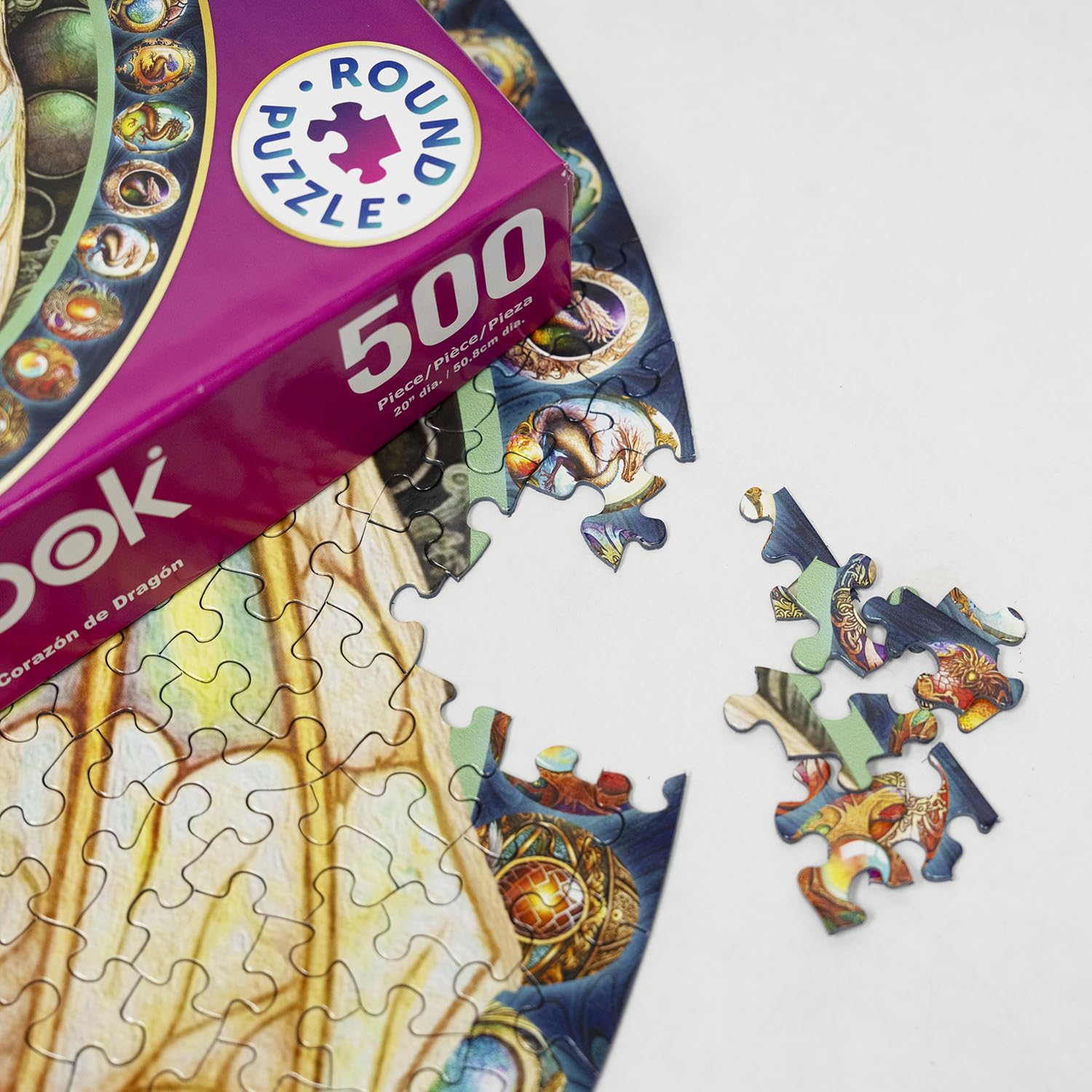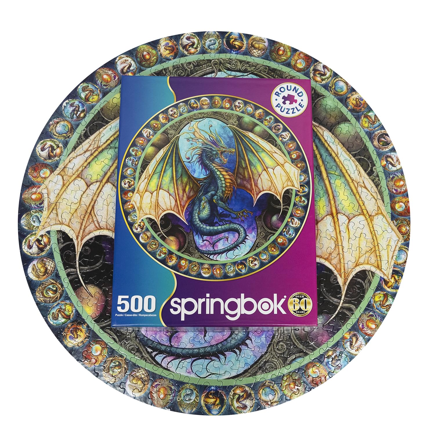 - Embark on a mythical quest with Springbok's Dragon Heart 500-piece round jigsaw puzzle for adults. Celebrate the Year of the Dragon with this challenging image featuring a mystical round design adorned with intricate artwork of a majestic dragon and a glowing heart, this puzzle offers a unique challenge for enthusiasts. Dive into the realm of fantasy as you piece together this mesmerizing depiction of courage and magic.