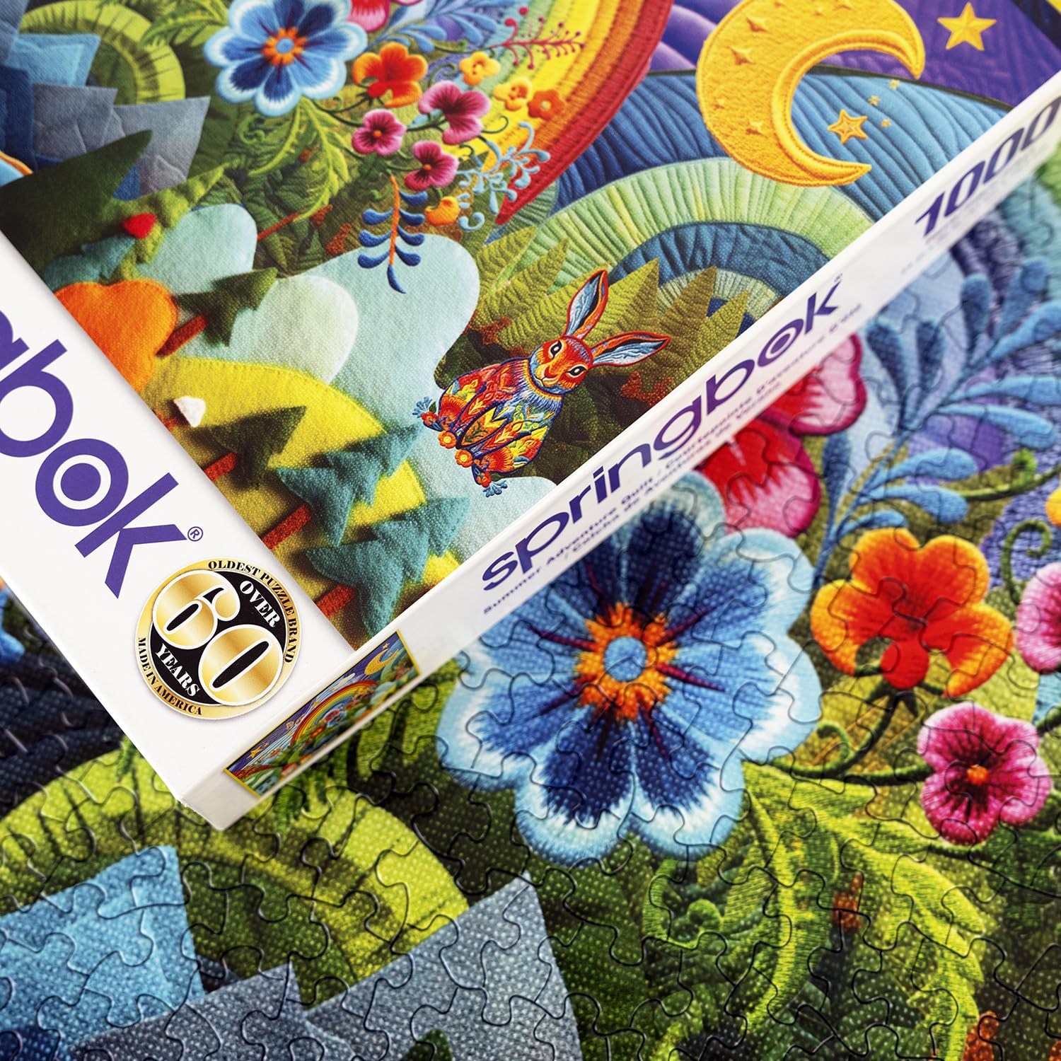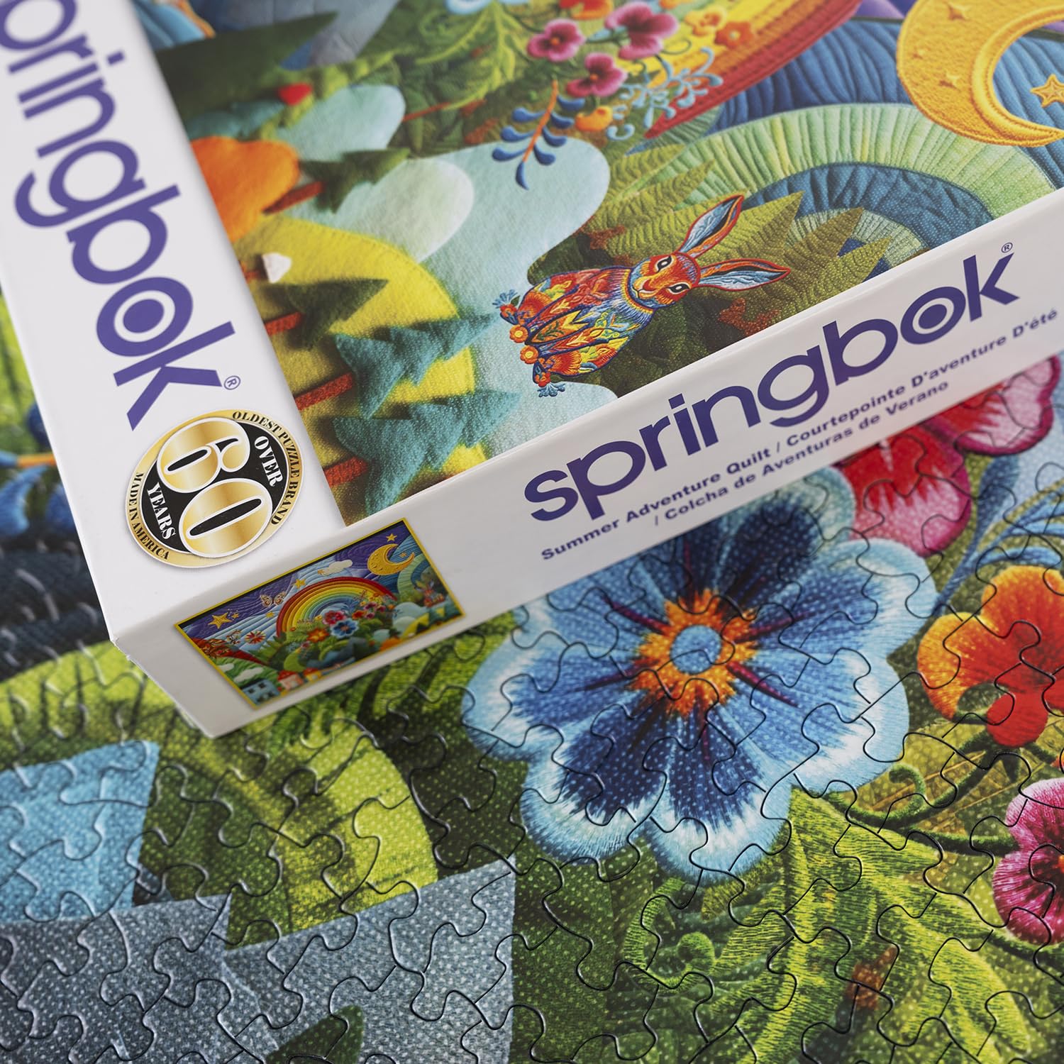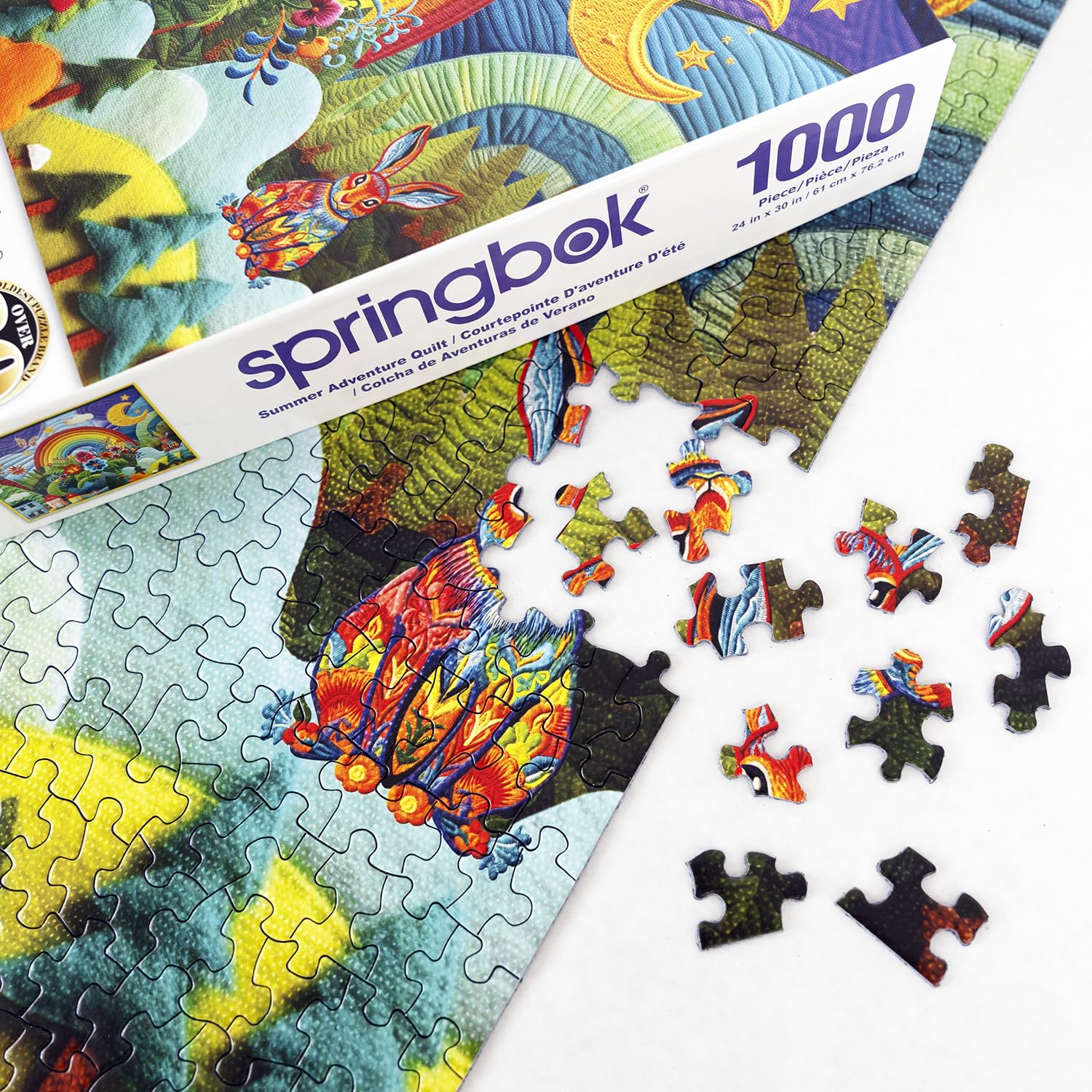 - Embark on a vibrant journey with Springbok's "Summer Adventure Quilt" 1000-piece puzzle, expertly illustrated by the talented artist Jena Dellagrottaglia. Revel in the intricate patterns and lively colors of a quilt that tells the story of summer adventures. Dellagrottaglia's meticulous attention to detail brings each patch to life, creating a delightful and engaging scene.