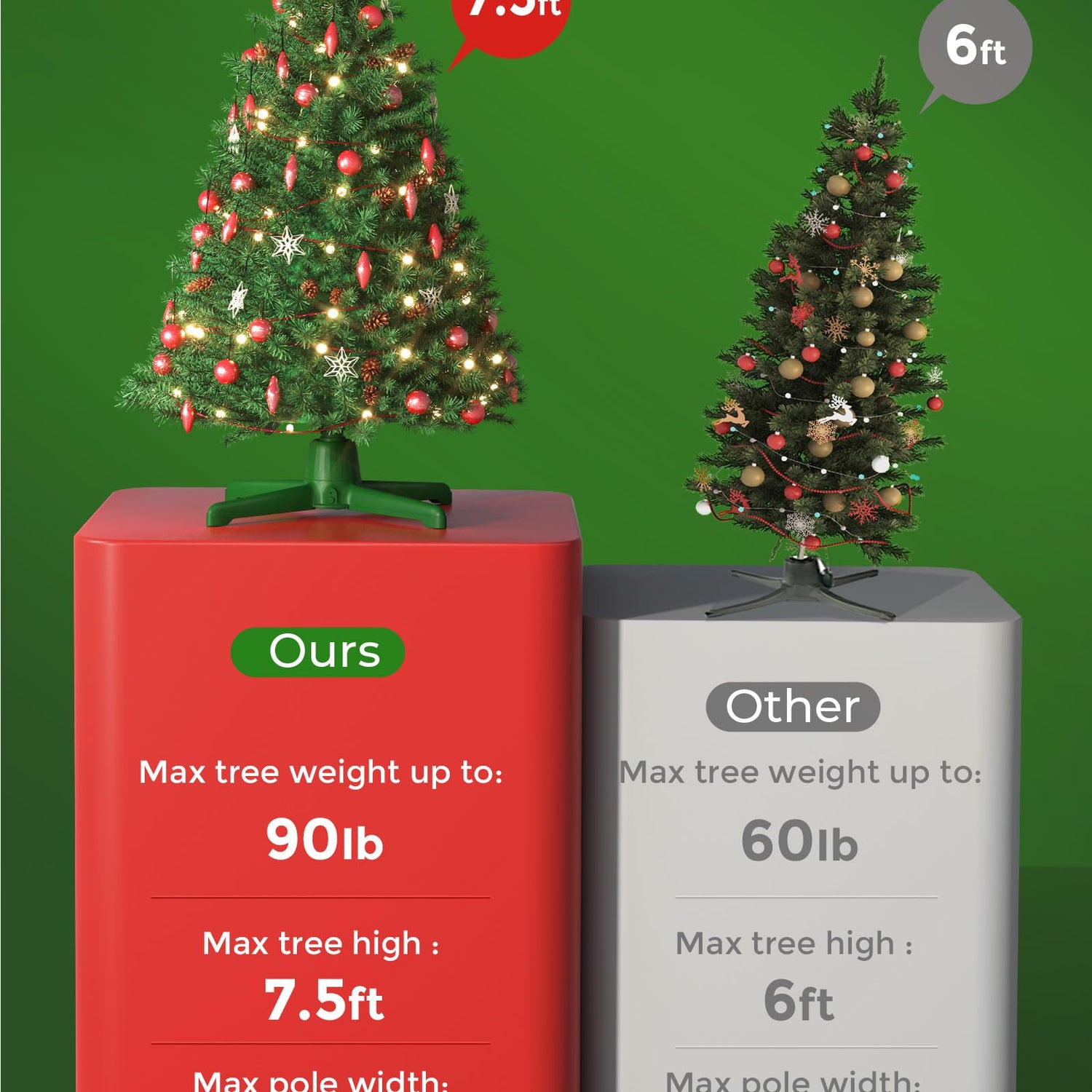 - Unmatched Stability and Durability - Crafted with sturdy ABS material, our spinning Christmas tree stand offers unwavering support for your artificial tree. It can effortlessly hold trees up to 7.5 feet tall or weighing up to 90 pounds, providing a secure foundation for your holiday centerpiece.