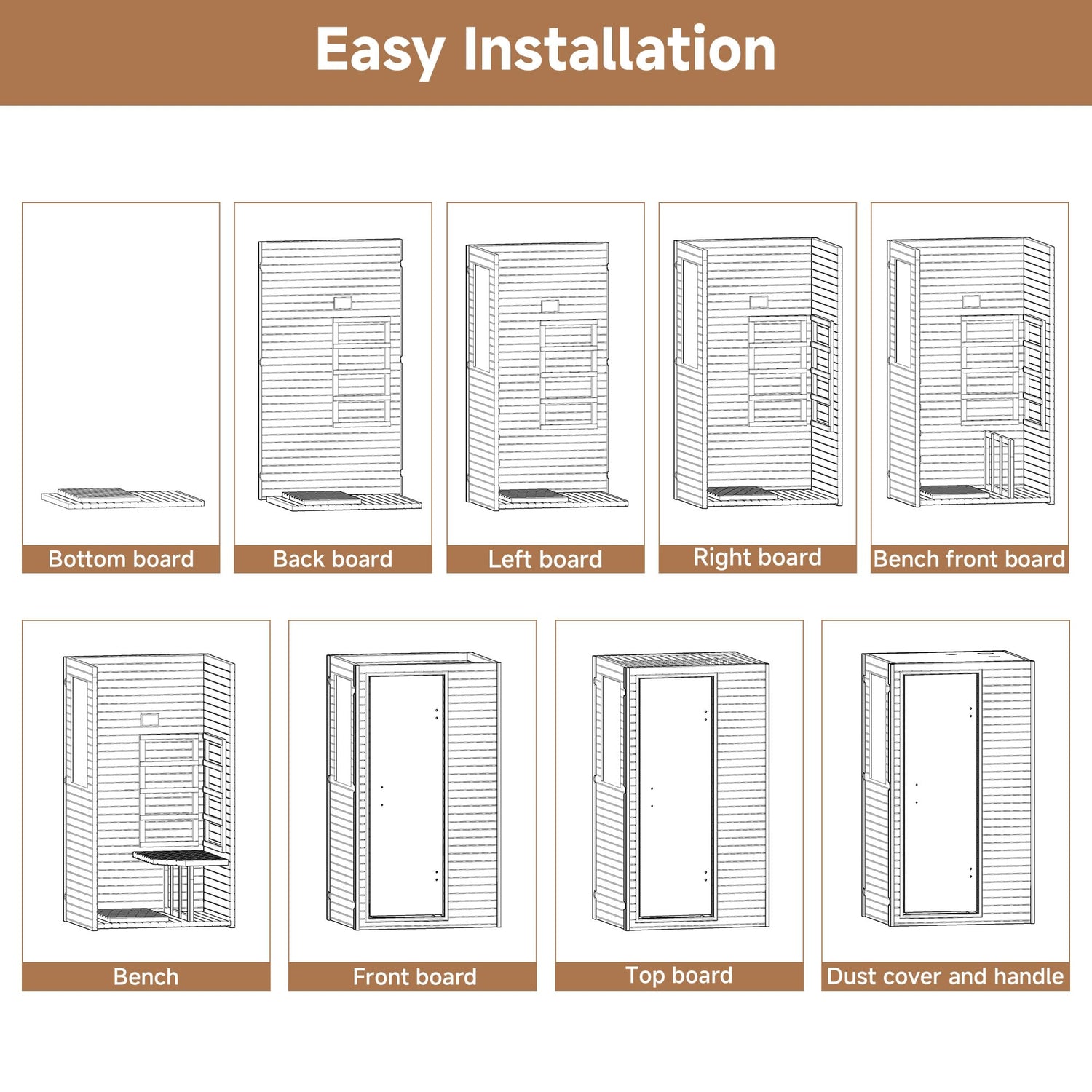 - Easy to Assembly: Shipped in one package, this indoor saunas for the home features a clasp-together design for easy setup. Clear, step-by-step instructions guide you through the process. This compact low emf infrared sauna fits easily into any space