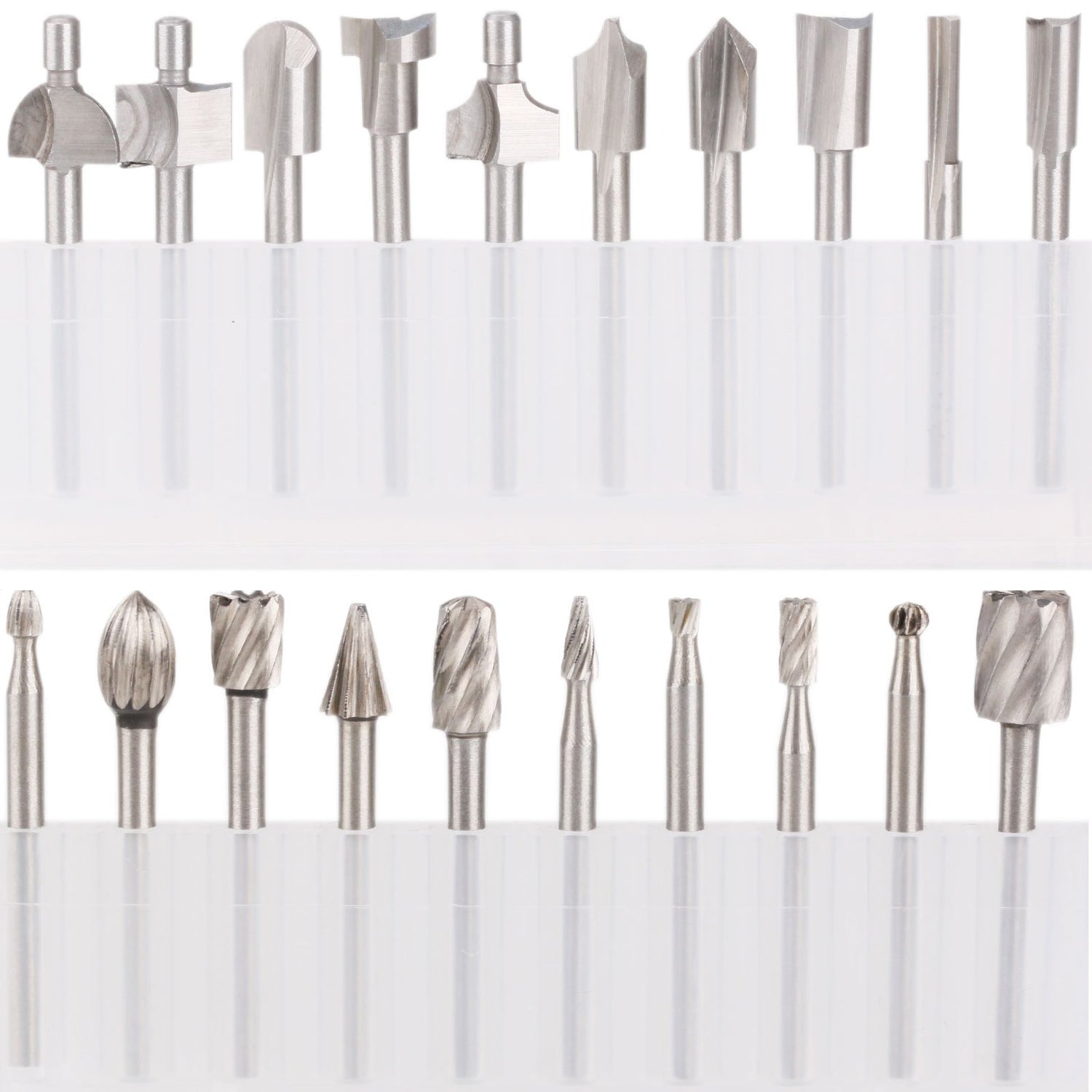 Details: 10Pcs TitaniumHSS Router Carbide Engraving Bits & 10Pcs Hss Router Bit For Rotary Tools-1/8" (3mm) Shank