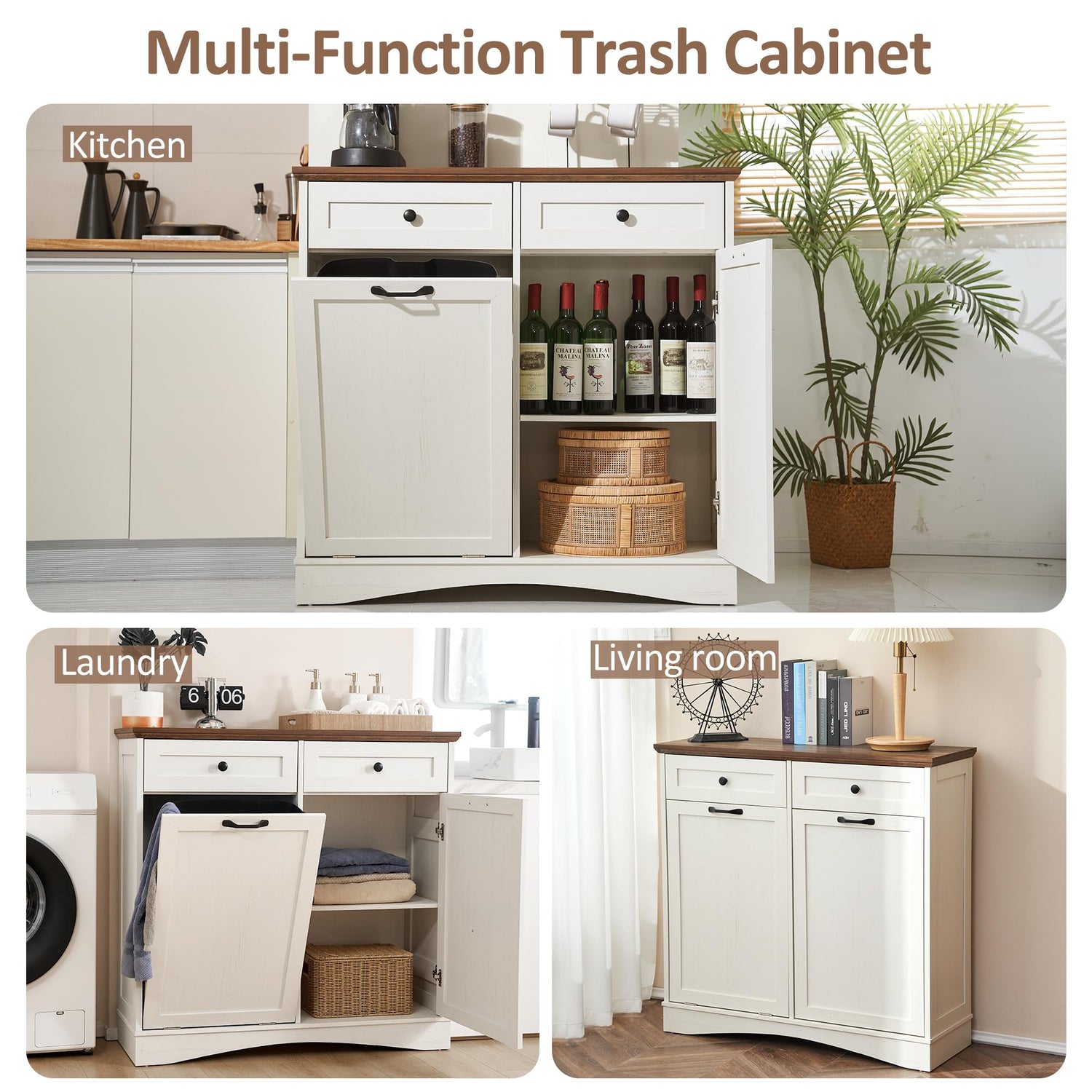 Spurgehom 13 Gallon Tilt Out Trash Cabinet Kitchen Waste Bins, Laundry Hamper Tilt Out Pet Proof Hidden Trash Bin for Kitchen Living Room, Antique White