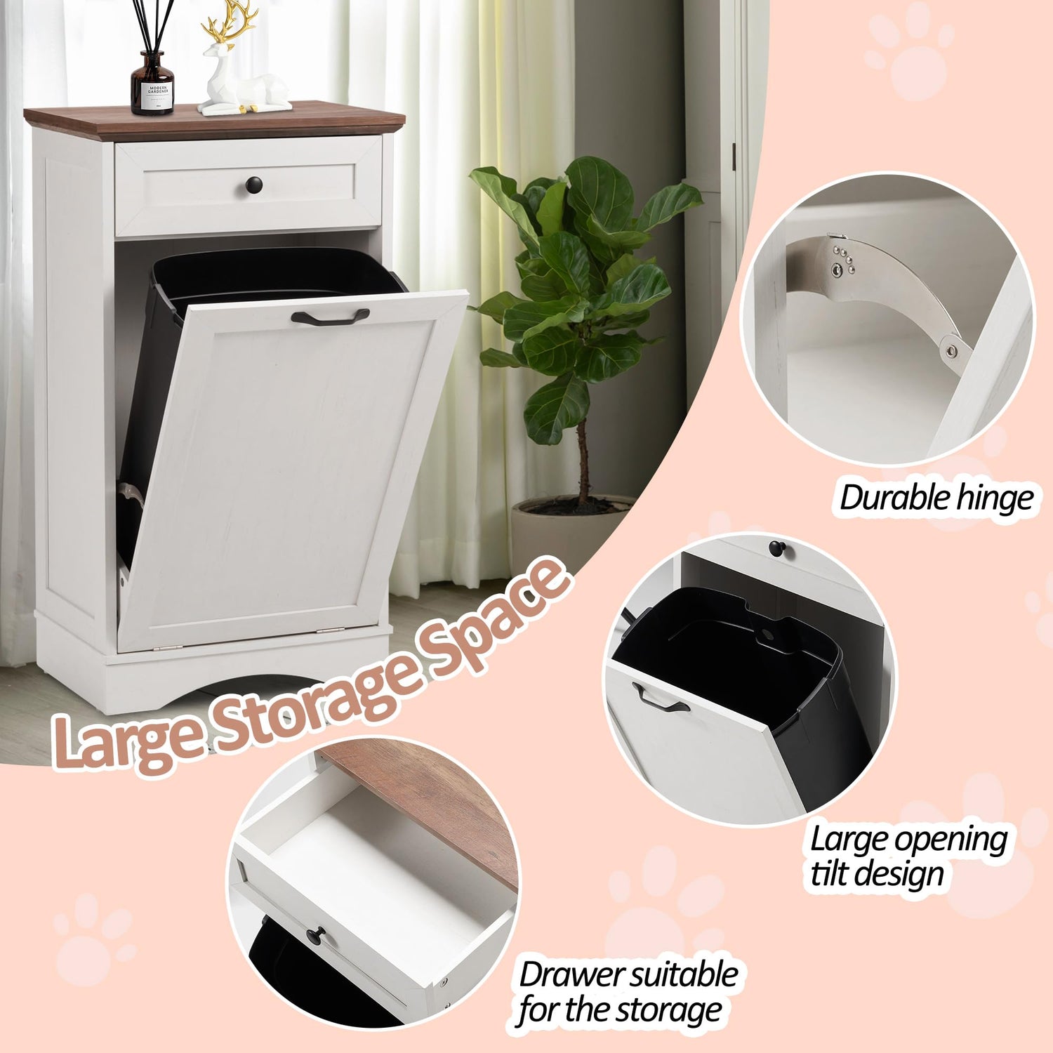 Spurgehom 13 Gallon Tilt Out Trash Cabinet Kitchen Waste Bins, Laundry Hamper Tilt Out Pet Proof Hidden Trash Bin for Kitchen Living Room,White
