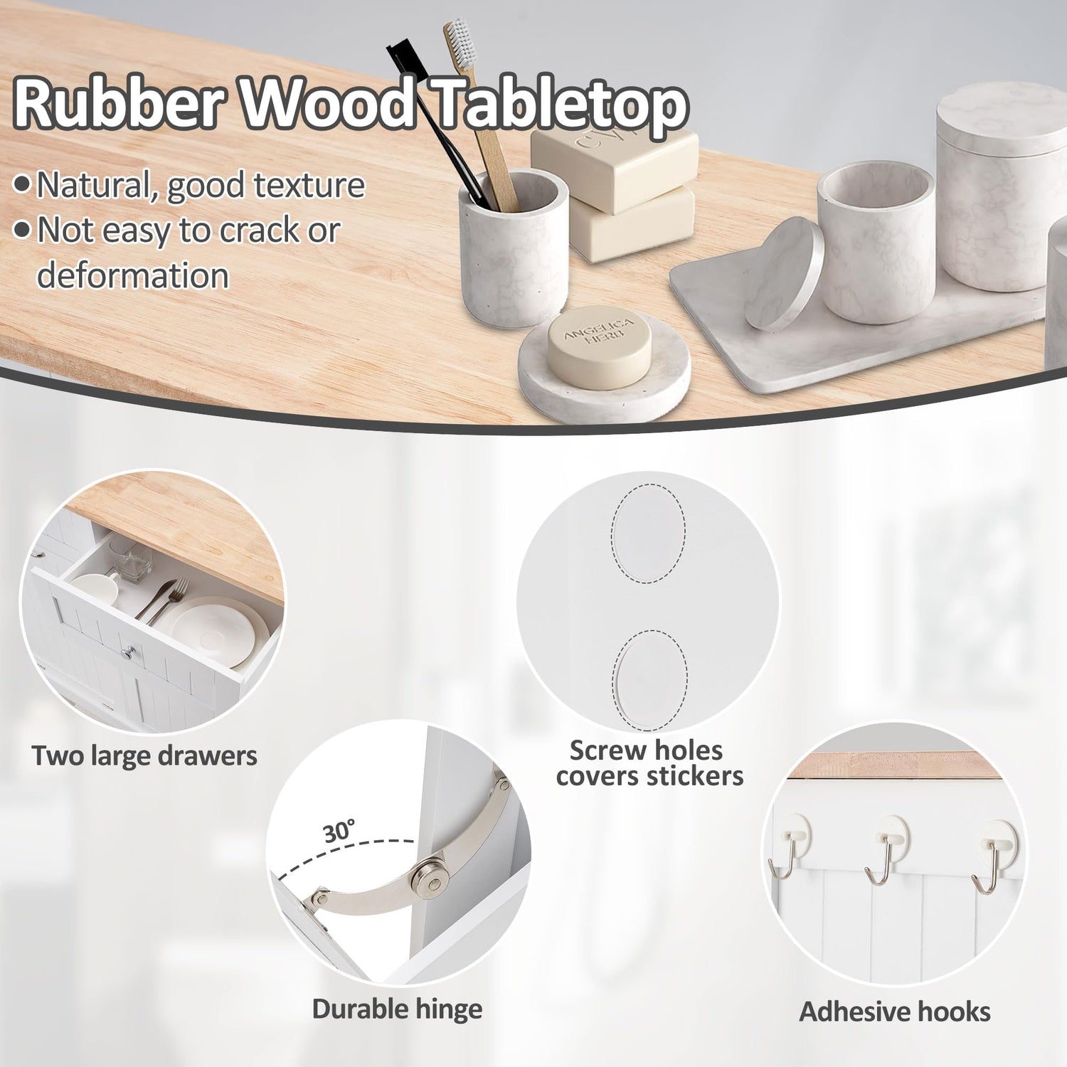 Spurgehom Double Door Trash Cabinet Kitchen Waste Bins,Tilt Out Laundry Hamper Cabinet with Hideaway Drawer Storage Bag, 10 Gallon Pet Proof Trash Can for Living Room,White
