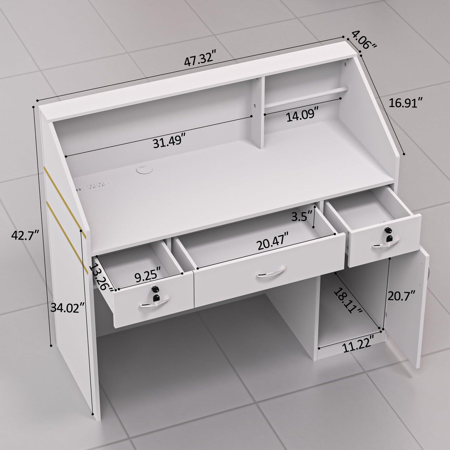 Spurgehom Reception Desk with Counter, Modern Front Table Equipped Lockers & Storage Shelves, 48-inch Checkout Counter with DIY Stripe for Lobbies, Salons, Retail, Home Offices, Reception Room