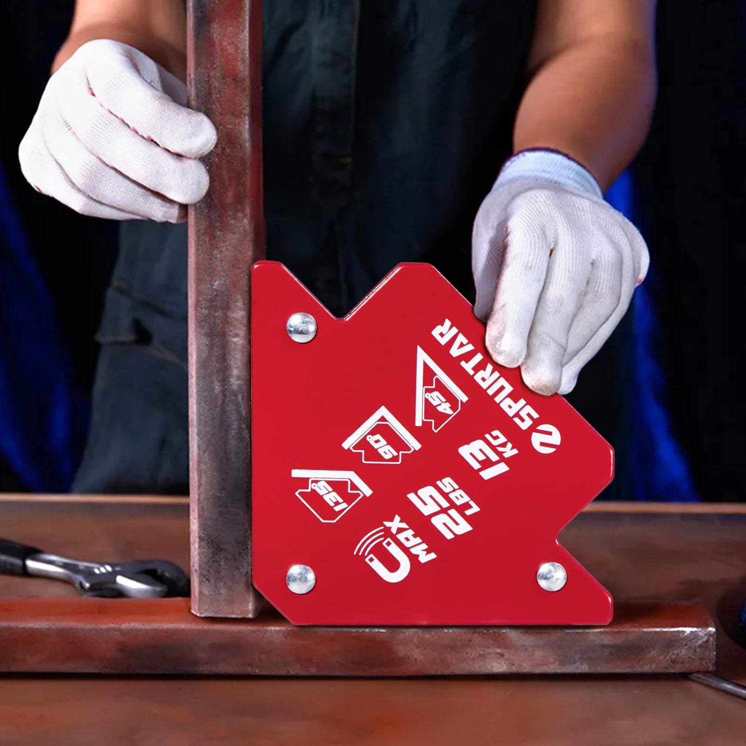 - STRONG POWER: Spurtar Angle Welding Magnet can hold and support any ferrous metal objects up to 25 lbs. These heavy-duty arrow magnets stick solidly and ensure a hand free welding while the bright red color will help you locate it more easily.