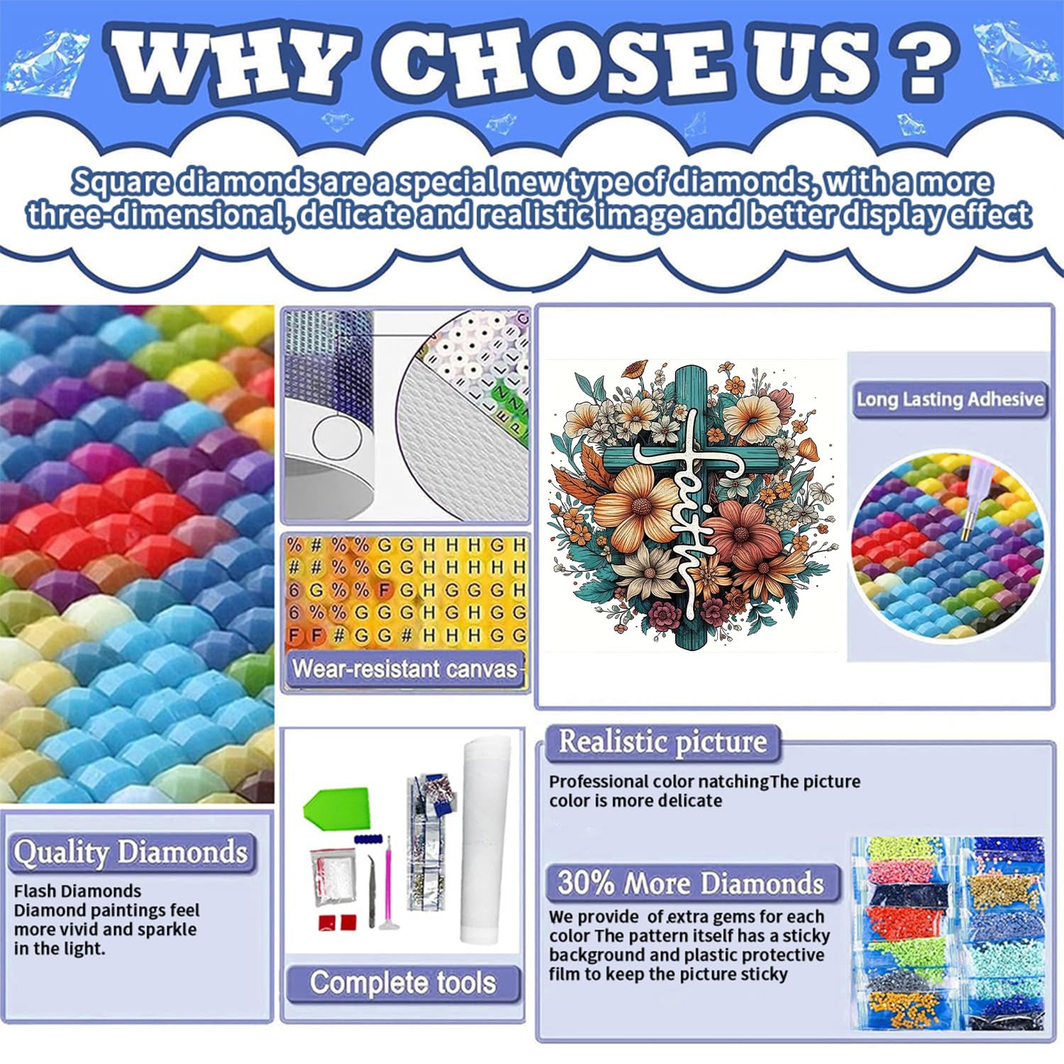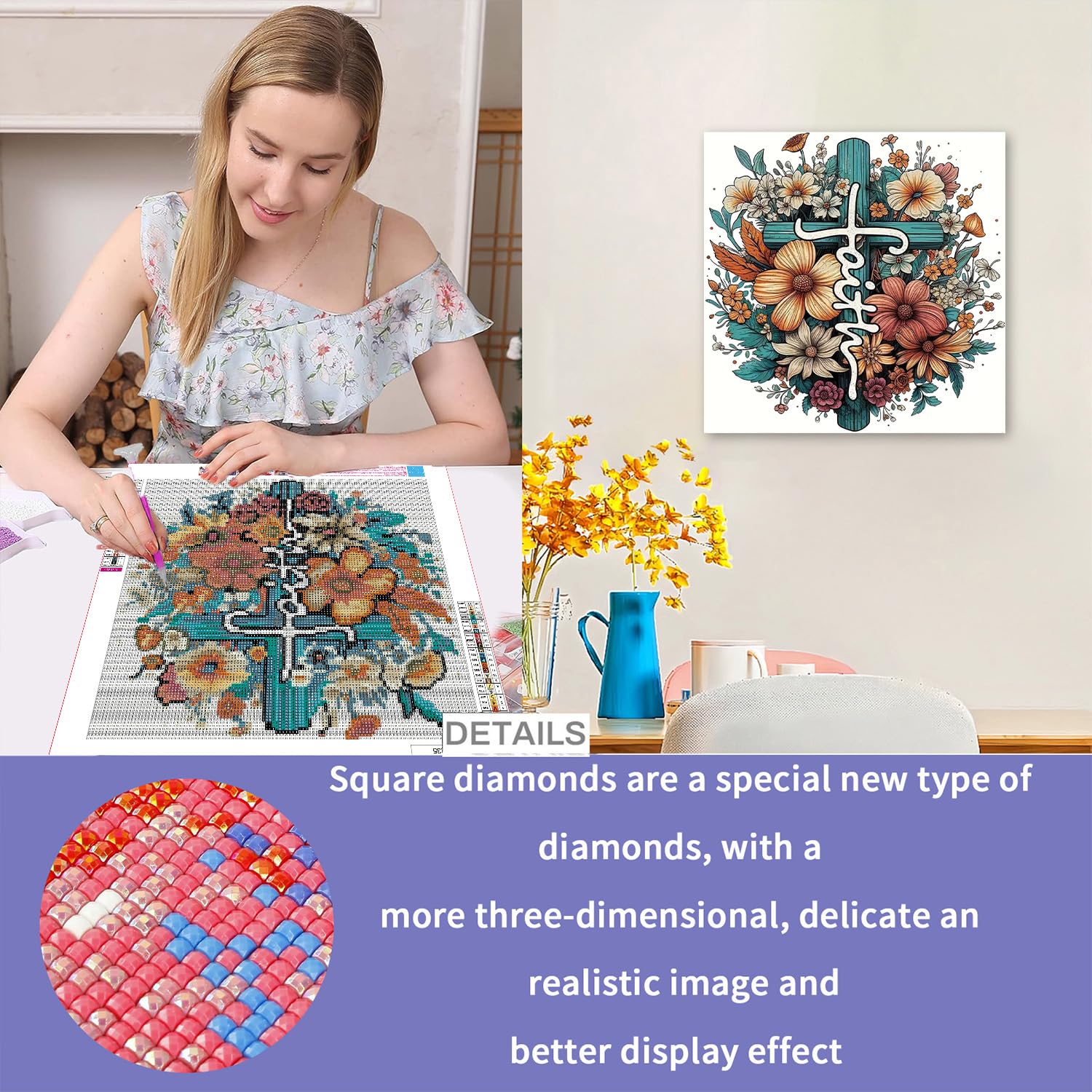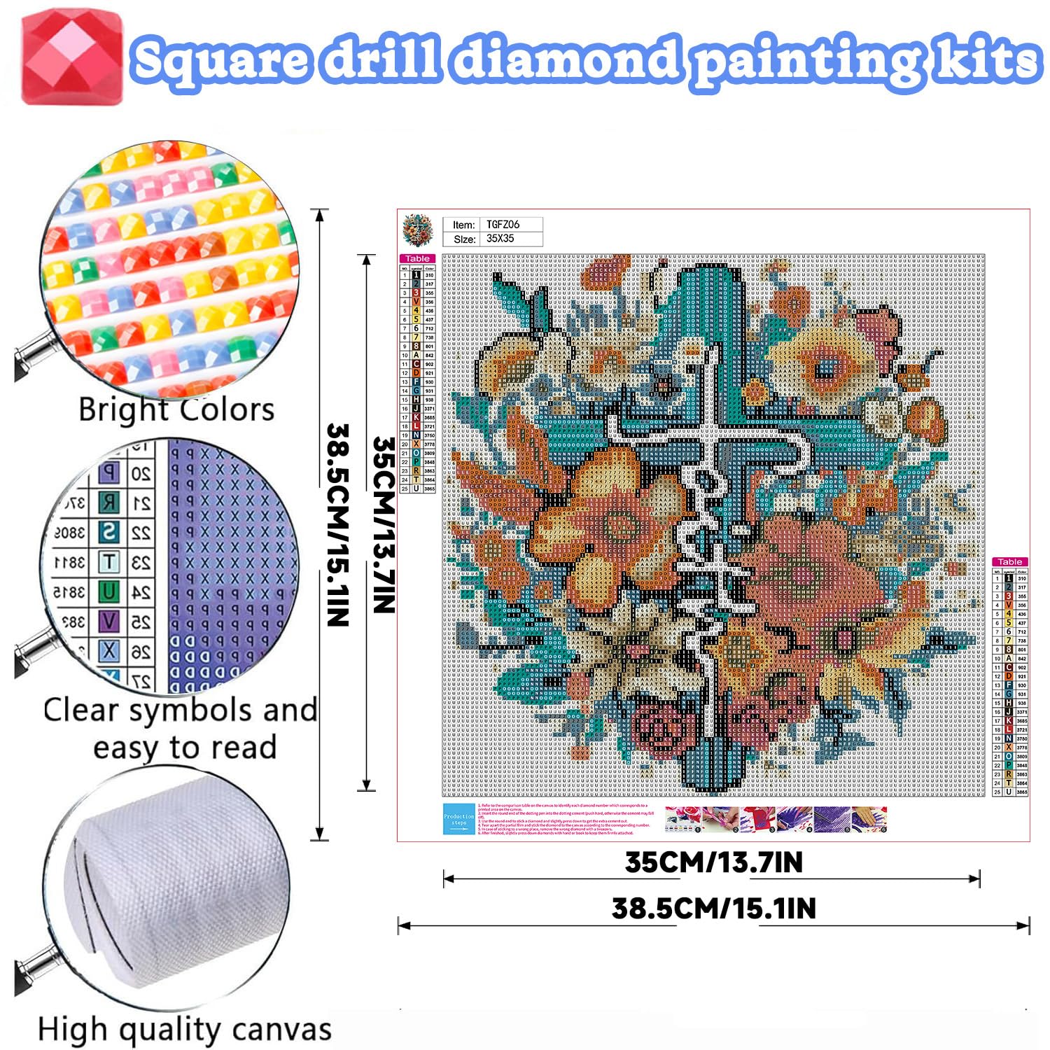 Square Drill Diamond Painting Cross Flower - 5D Full Square Diamond Art Kits for Adults with Tools, Stunning No-Gap Design, Easy to Apply and Frame, Home Wall Decor, Gift Idea(14x14 Inch)
