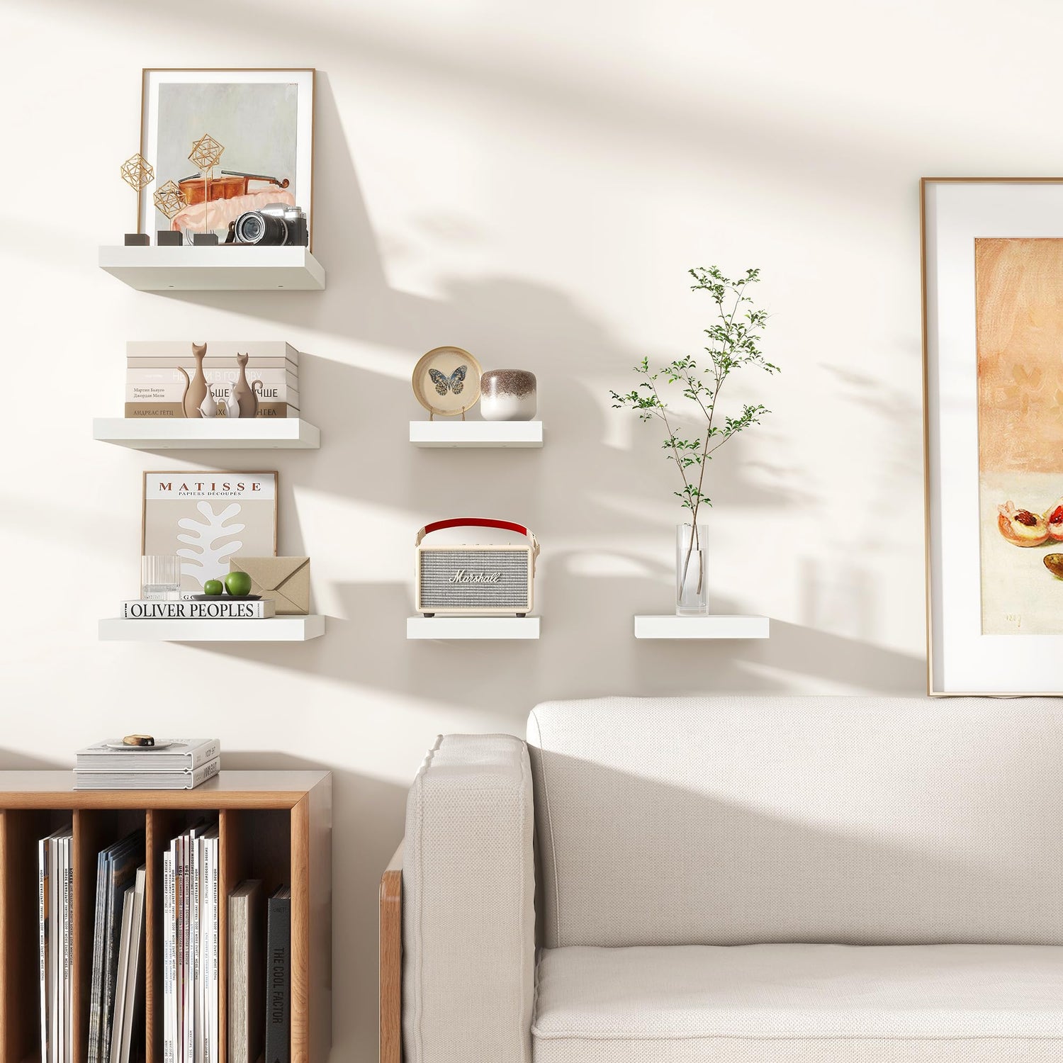 Square Floating Shelves for Wall, 8"W x 8"D x 1.3"H, 3 Pack of Small Wall Mounted Engineered Wood Shelves with Invisible Brackets for Living Room, Bedroom, Bathroom, Kitchen Decor and Storage, White