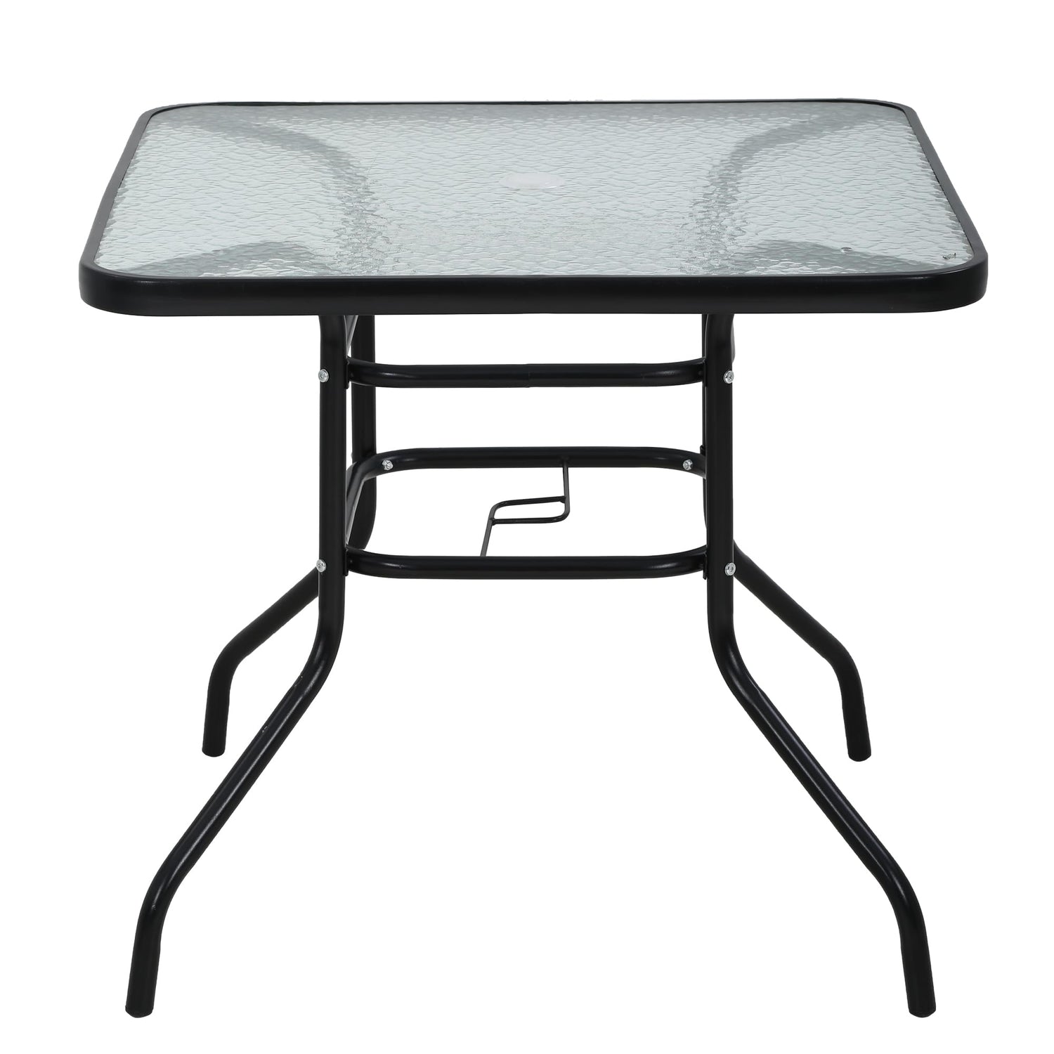 Square Outdoor Table, Patio Table with Umbrella Hole, Patio Dining Table with Tempered Glass, Outdoor Dining Tables, Square Patio Table for Balcony, Backyard, Poolside, Sunroom, Patio Tables, Black