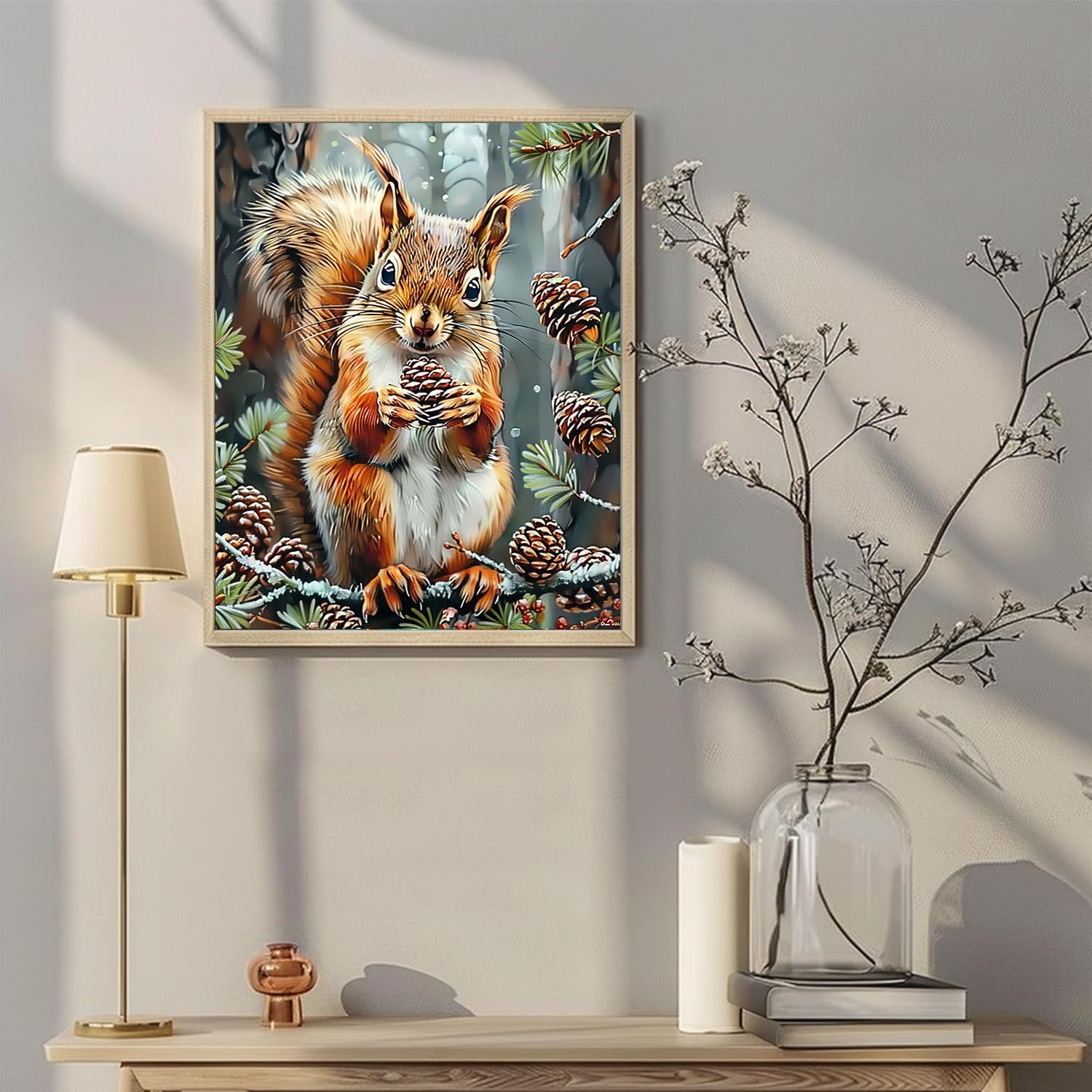 Squirrel Eating Pine Cone Paint by Number Kits 16 x 20 inch Canvas Autumn Decor DIY Painting for Adults Beginners Fall Decor Paint by Numbers With Brushes Acrylic Pigment for Home Decor(Without Frame)