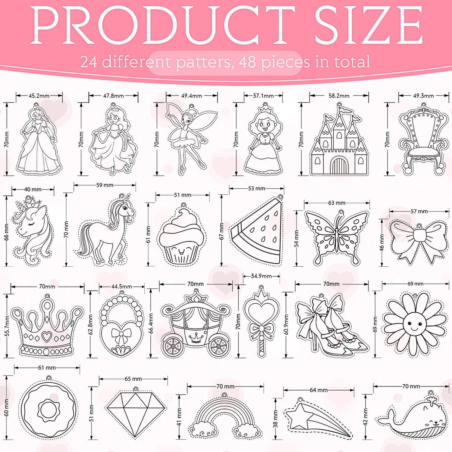 - Complete Unicorn Paradise:includes 48 sun catchers indoor window and 24 suction cups, with the suncatchers available in 24 styles;It's a complete set to engage in making beautiful, vibrant and creative suncatchers for indoor display; Note Paint and brushes are not included