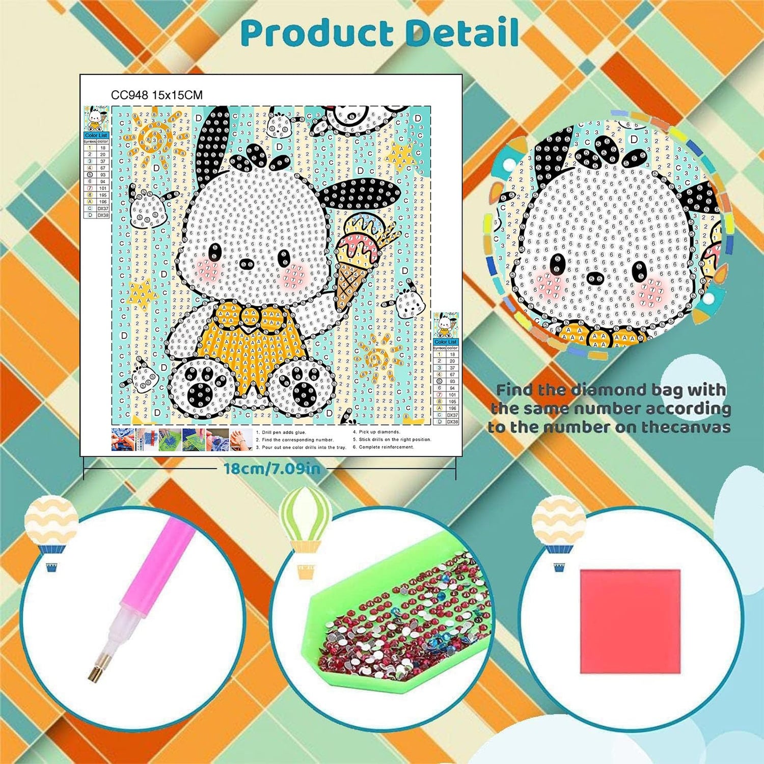 Sretoul 4 Pack Cartoon Diamond Art Kits for Kids-4 Pack Diamond Art Painting for Kids, 7 Year Old Girl Birthday Gifts 6X6 Inch