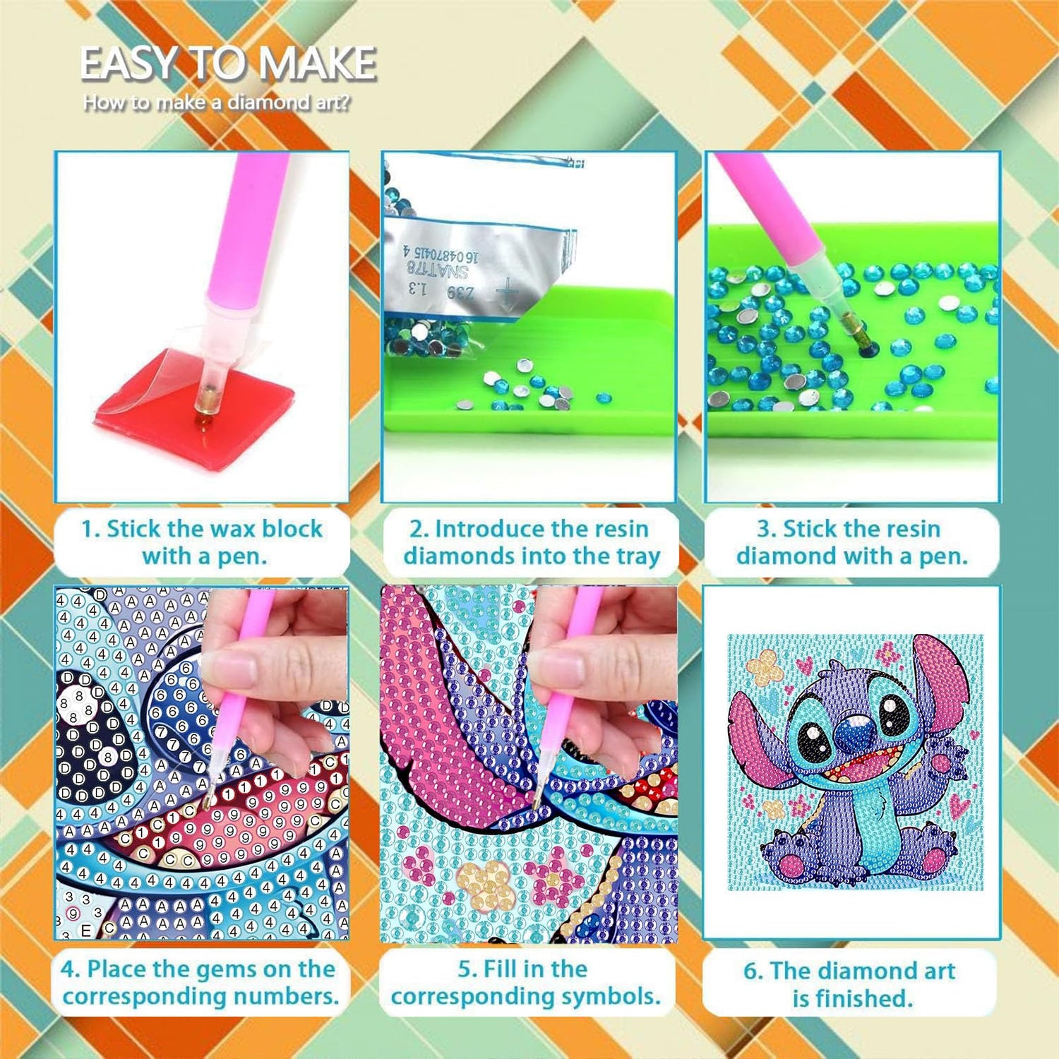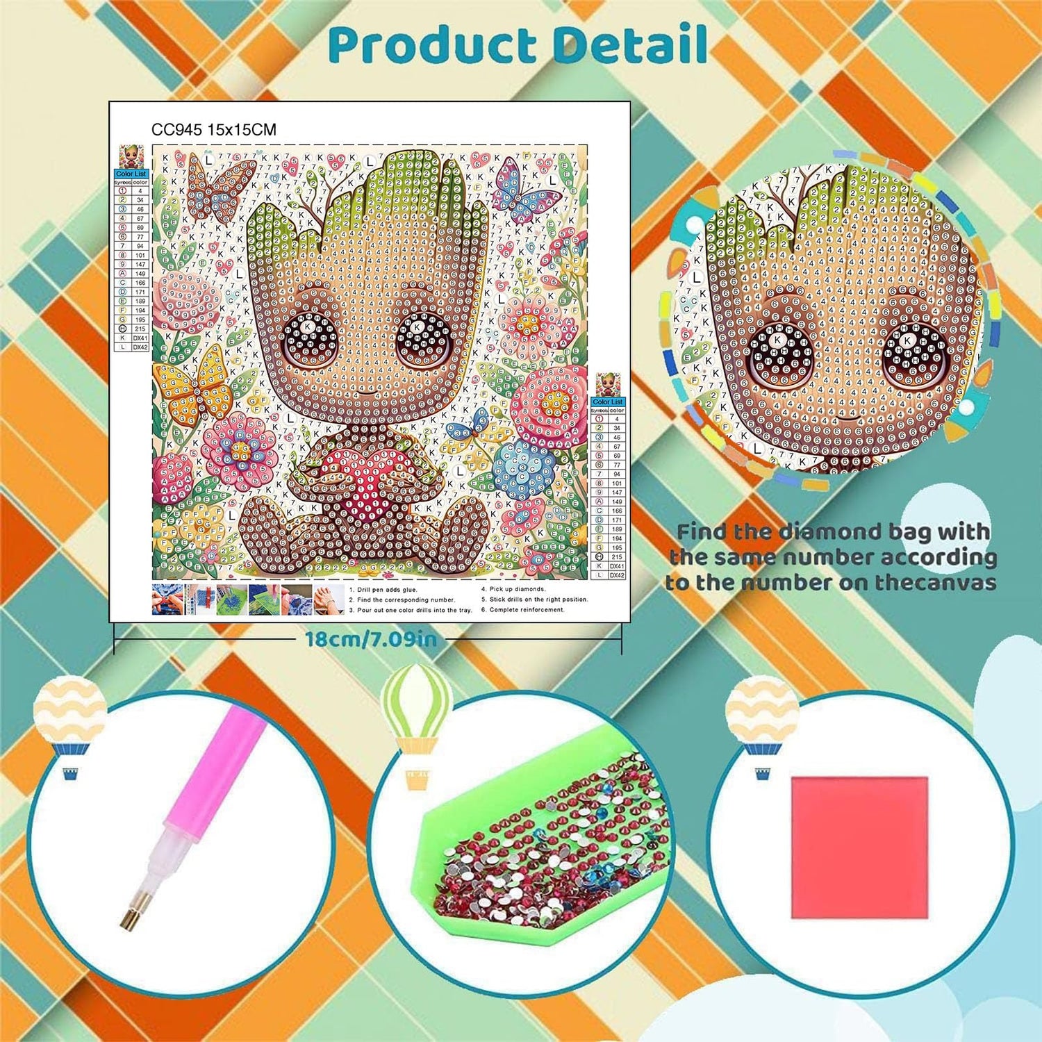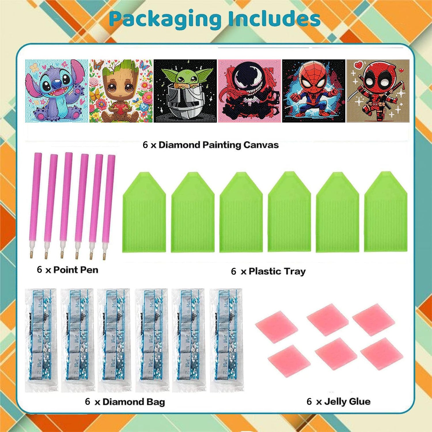 - IMPECCAble CRAFTSMANSHIP: The 6-pack diamond art painting kits for kids are crafted with top-notch quality. Each kit includes all necessary tools: a high-quality fully drilled canvas with a printed legend, a diamond pen, a diamond tray, red glue, plastic bags for diamonds, and over 30% extra colored round diamonds.
