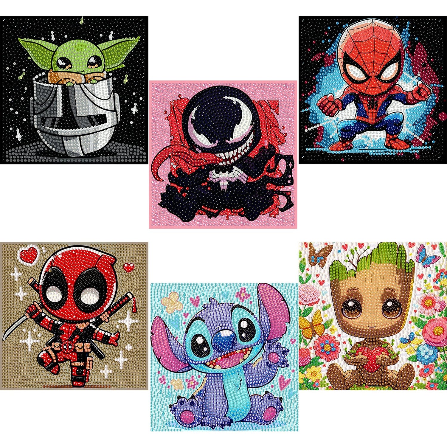 Sretoul 6 Pack Cartoon Diamond Art Kits for Kids- 6 Pack Small Diamond Art Painting, Arts and Crafts for Kids Ages 4-8-12 6X6 Inch