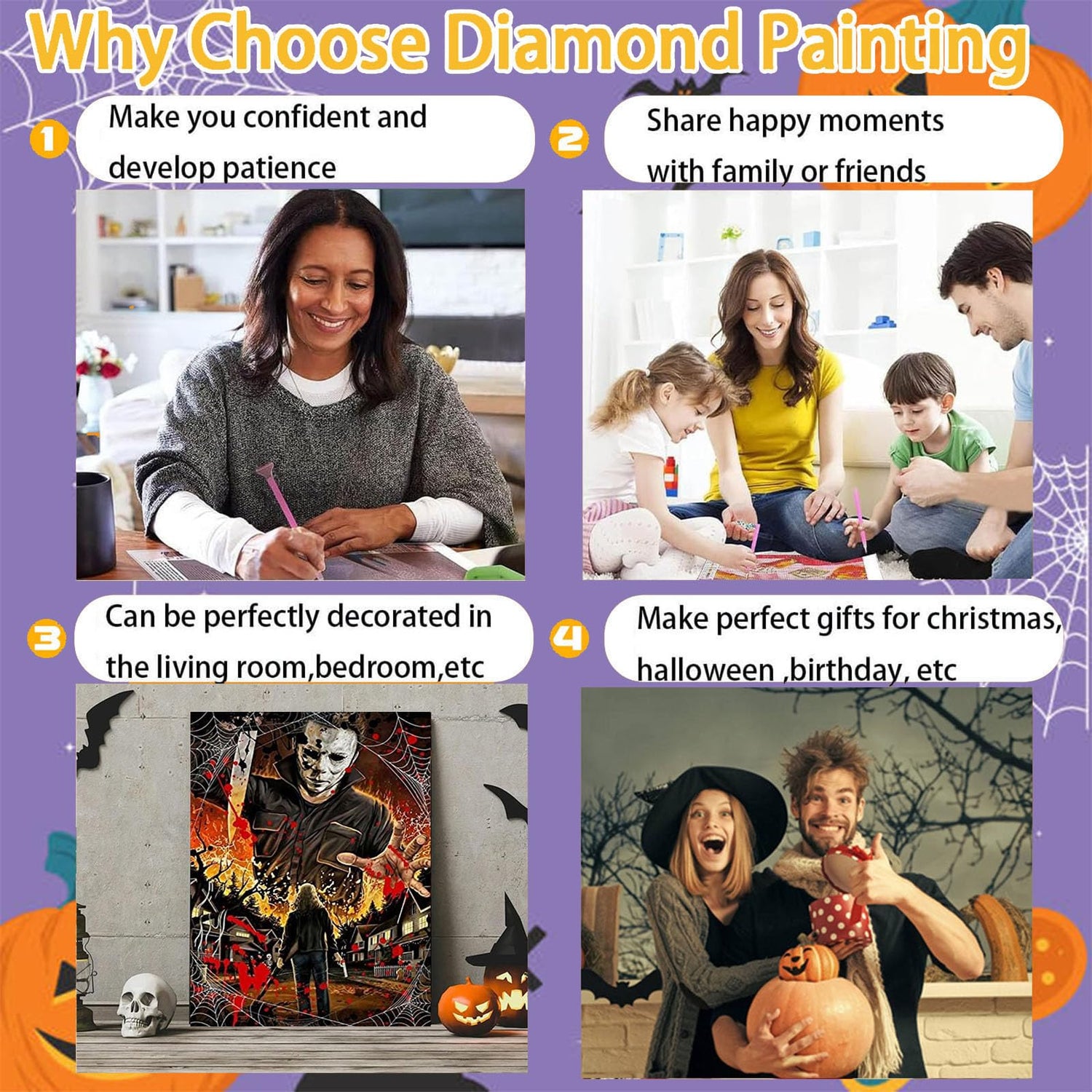 - 【Attractive decoration】 Halloween is coming, you can hang diamond paintings as Halloween home decoration in your living room, study, front door and anywhere else. Sparkling diamond paintings are perfect for decorating houses, and the unique creativity will make your Halloween decorations stand out