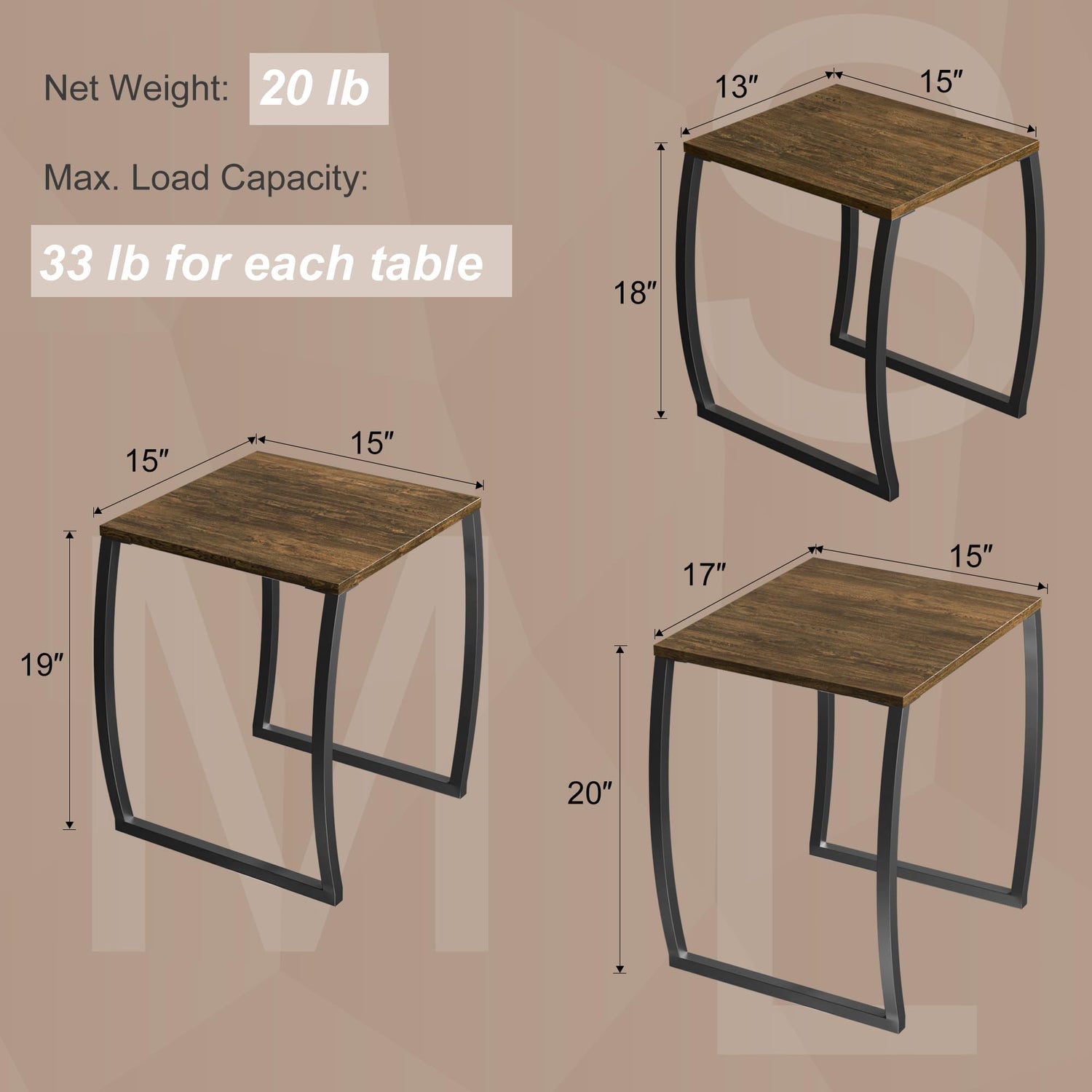 - Vintage End Tables - The matte-black frame, vintage wood and arch design create an attractive rustic style. This side table set fits well with any room decor and will definitely show your personal taste.