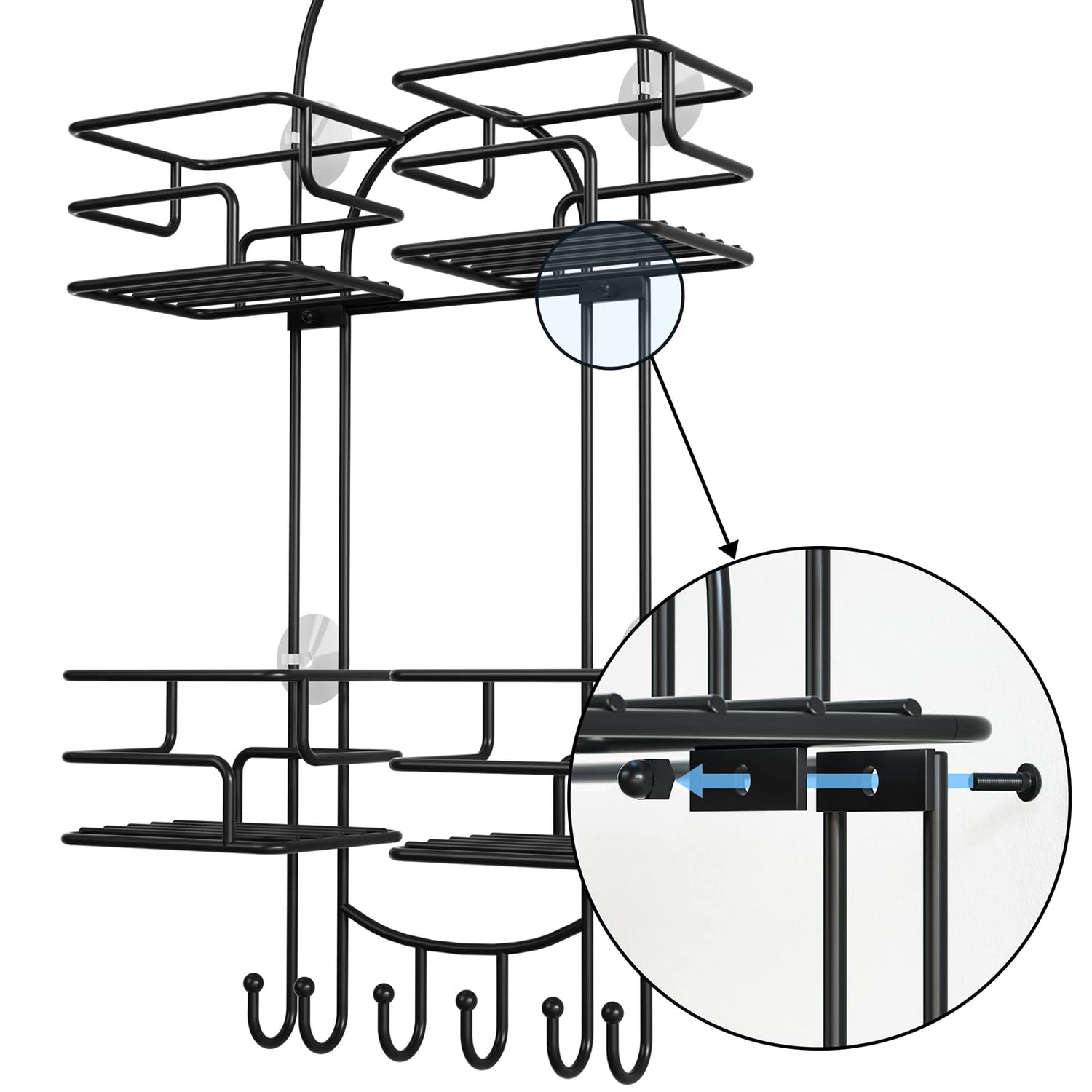 SRIWATANA Shower Caddy Hanging Over Head, Bathroom Shower Organizer Shower Rack Holder with Hooks for Razors - Black