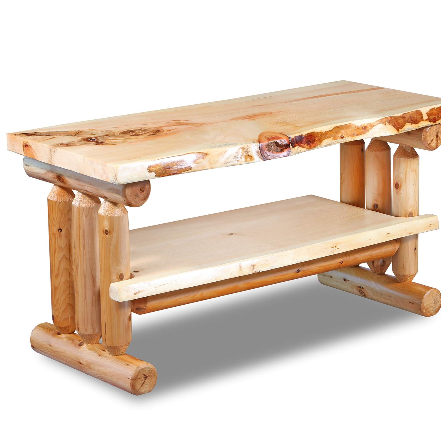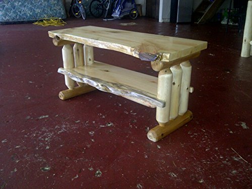 Details: SRL Rustic Log Pine TV Stand with Storage: This handcrafted TV table stand is built to accentuate virtually any rustic or industrial decor style. Our log furniture is made out of northern white cedar and white pine, with character on the live edges. Handcrafted in the USA, the media console cabinet ensures that your piece is truly one-of-a-kind. Some logs exhibit cracks called “checking”. This is the natural drying process of a circular log and will not affect the structural quality of your TV table stand. Extremely versatile, our TV tables can be used in any space of your home and it will give it the perfect cozy touch. — Features: The approximate dimensions of the rustic entertainment center are 48” L x 18” W x 22” T. Minor assembly is required for this tv table stand. — Available Finishes: Our TV entertainment center is available in clear lacquer, honey pine and unfinished. — Care Instructions: Simply wipe your rustic entertainment cabinet with a damp cloth to maintain their pristine appearance. — About Us: Southern Rustic Logwerks is a family-owned business located in Amory, Mississippi. We believe there is a redemptive quality to authentic hand-crafted wood furniture and take great pride in bringing that genuine one-of-a-kind style to each of our customers. Each piece is unique and shows the character of the northern white cedar and white pine that grow naturally in the northern part of the USA.