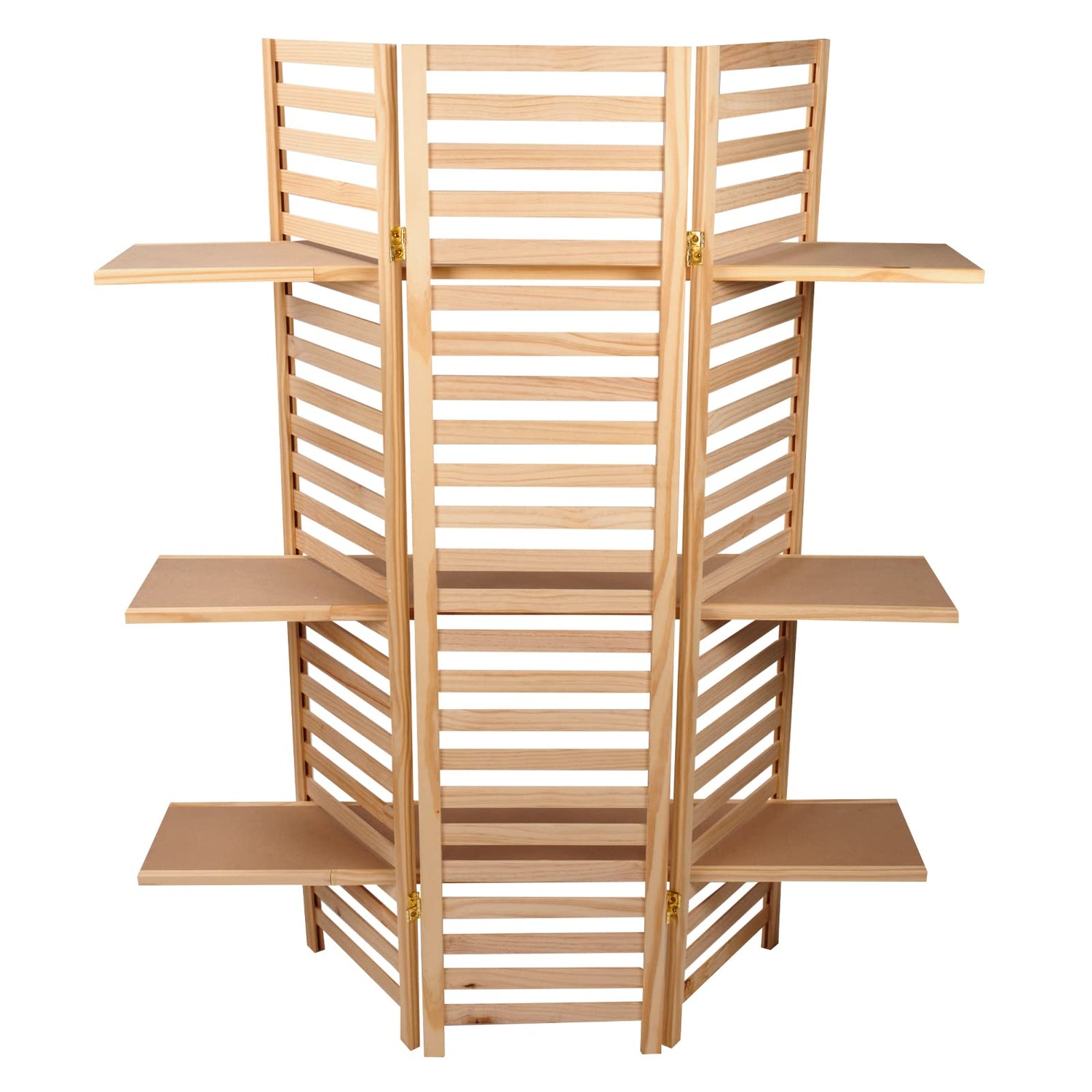 SSWBasics 3-Panel Wood Display With 3 Shelves - Unit Can Be Stained Or Painted - Great for a Wide Range of Merchandise from Housewares, Clothing and Beverages - Natural Pine