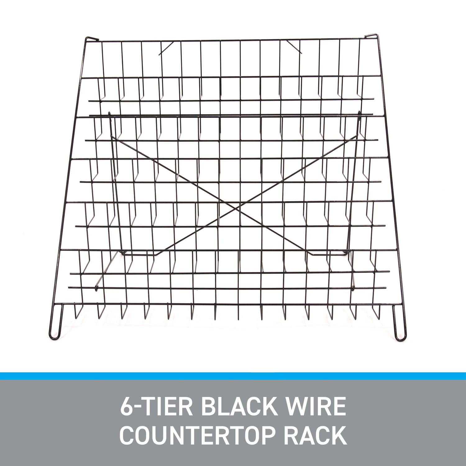 - Sturdy 6-Tier Design: Our book display rack features a robust 6-tier design, ensuring maximum stability and durability. Perfect for any retail setting, it provides ample space to showcase a wide range of items from books to brochures. This countertop wire display measures 22"H x 29½”W x 18"D and features shelves that measure 2 1/2" deep.