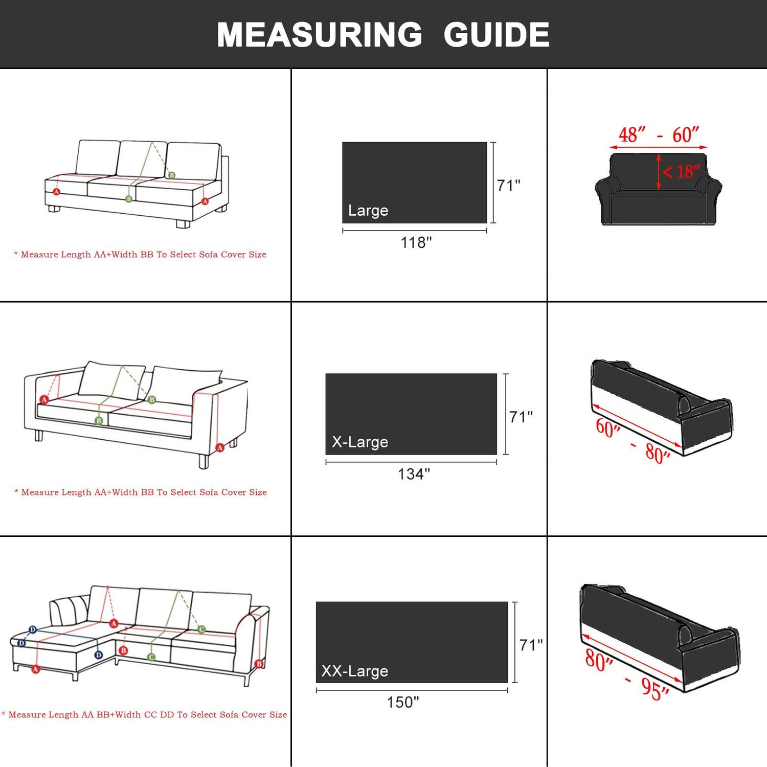- ღღ【LARGE SIZE】1piece -71x118 inches - suitable for the length of 48-60 inches of sofa (including armrest), such as loveseat recliner chair futon, 2-3 sofa, etc.sofa blanket size suitable for most sofa shapes (or some novel, strange furniture), please measure the size before purchase, see the measurement guide in the figure. Tip: L-shaped U-shaped or irregular sofa is recommended to buy 2-3 pieces of combination.