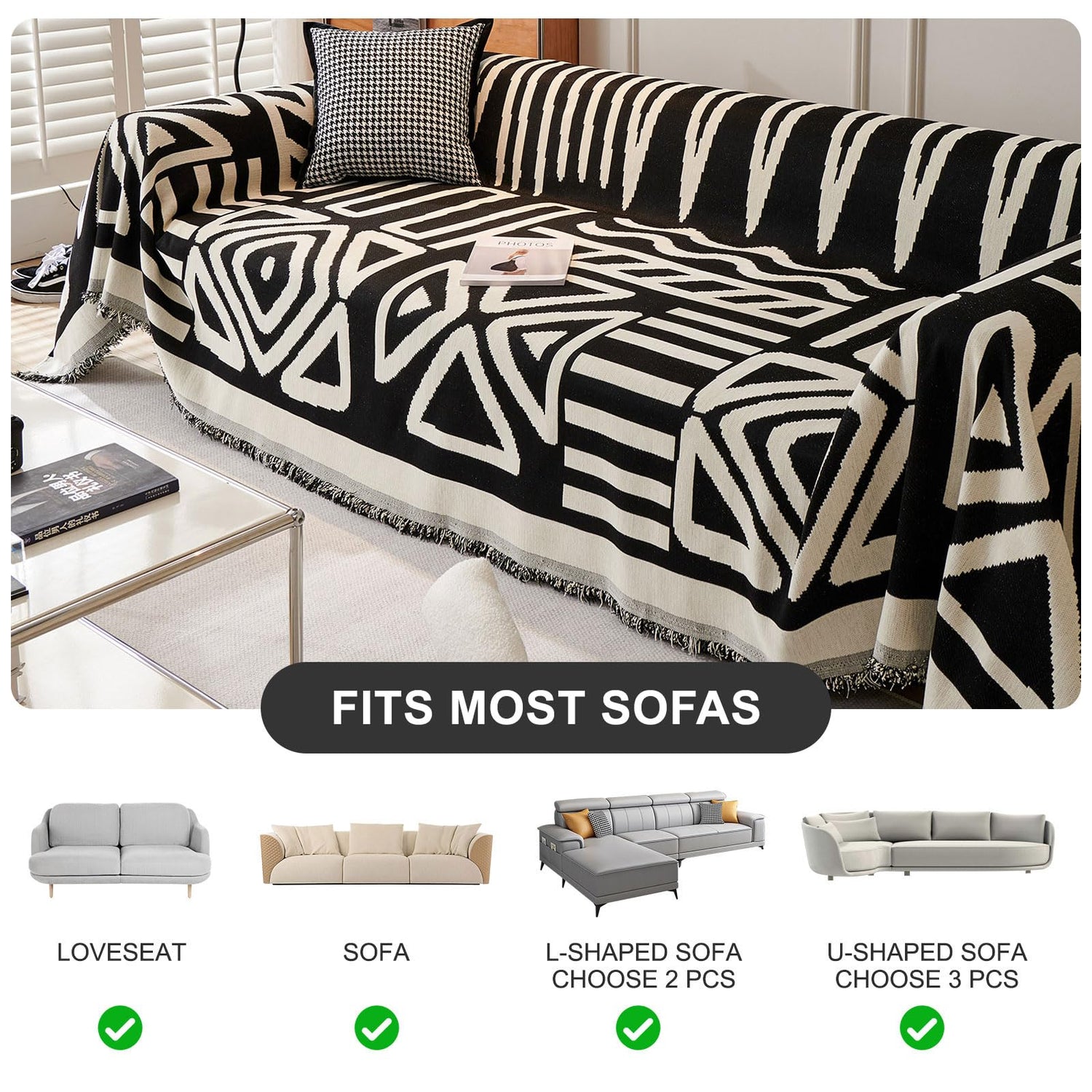 - ღღ【FASCINATING BOHO GEOMETRY】Stylish and simple triangle lattice geometric pattern creates a sense of visual dynamics, making the dull room more charming. The exquisite tassel design at the bottom has a distinct national style characteristics, and a modern sense of light luxury, protecting your sofa from daily wear and leakage and making the sofa look more noble and elegant!