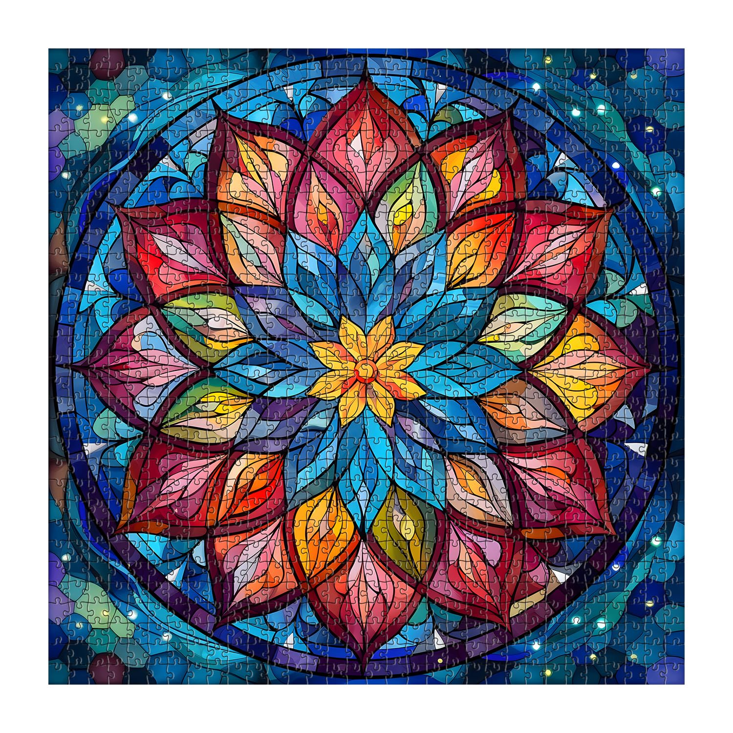 - Stained glass mandala puzzles for adults 1000 piece:This mandala art puzzles for adults shows the splendor of a stained glass mandala flower. The hard jigsaw puzzles for adults mandala is full of art, as if leading the viewer into a magical garden