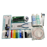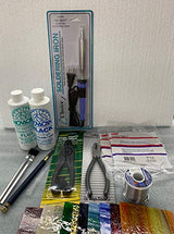 Details: 1. Soldering Iron /2. Toyo's Pencil Grip Pattern Cutter / 3. Fletcher 6” Running Plier / 4. Stained Glass Breaker/Grozer(or Dragon) / 5. Novacan Black Patina For Lead & Solder (8 Oz) / 6. Novacan Old Masters Flux (8 Oz) / 7. Amerway 60/40 Solder (1 LB Spool) / 8. 7/32" Copper Back Copper Foil (2 Rolls) / 9. Assorted Stained Glass (10 sheets of 4”x4”) / 10. Chemical Brush (2 Pack). WARNING: This product can expose you to chemicals including lead which is known to the State of California to cause cancer. For more information, go to www.P65Warnings.ca.gov.”