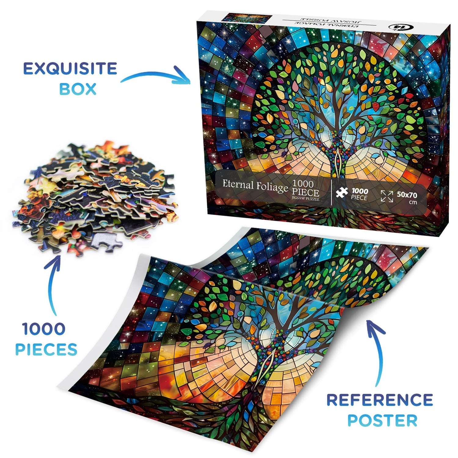 Stained Glass Tree of Life Puzzle 1000 Piece for Adults, Fantasy Galaxy Jigsaw Puzzles Art, Colorful Nature Leaf Puzzle