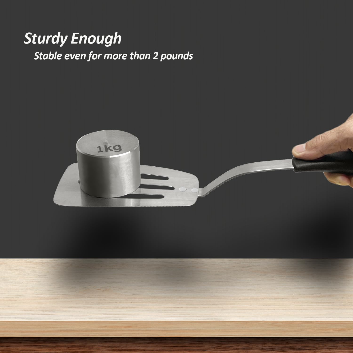Stainless Steel Flexible Spatula Turner, Thin Slotted Metal Spatula for Cast Iron Skillet, Thin Blade and Heat Resistant Silicone Handle, Great for Egg, Cookie, Meat, Crep, Large