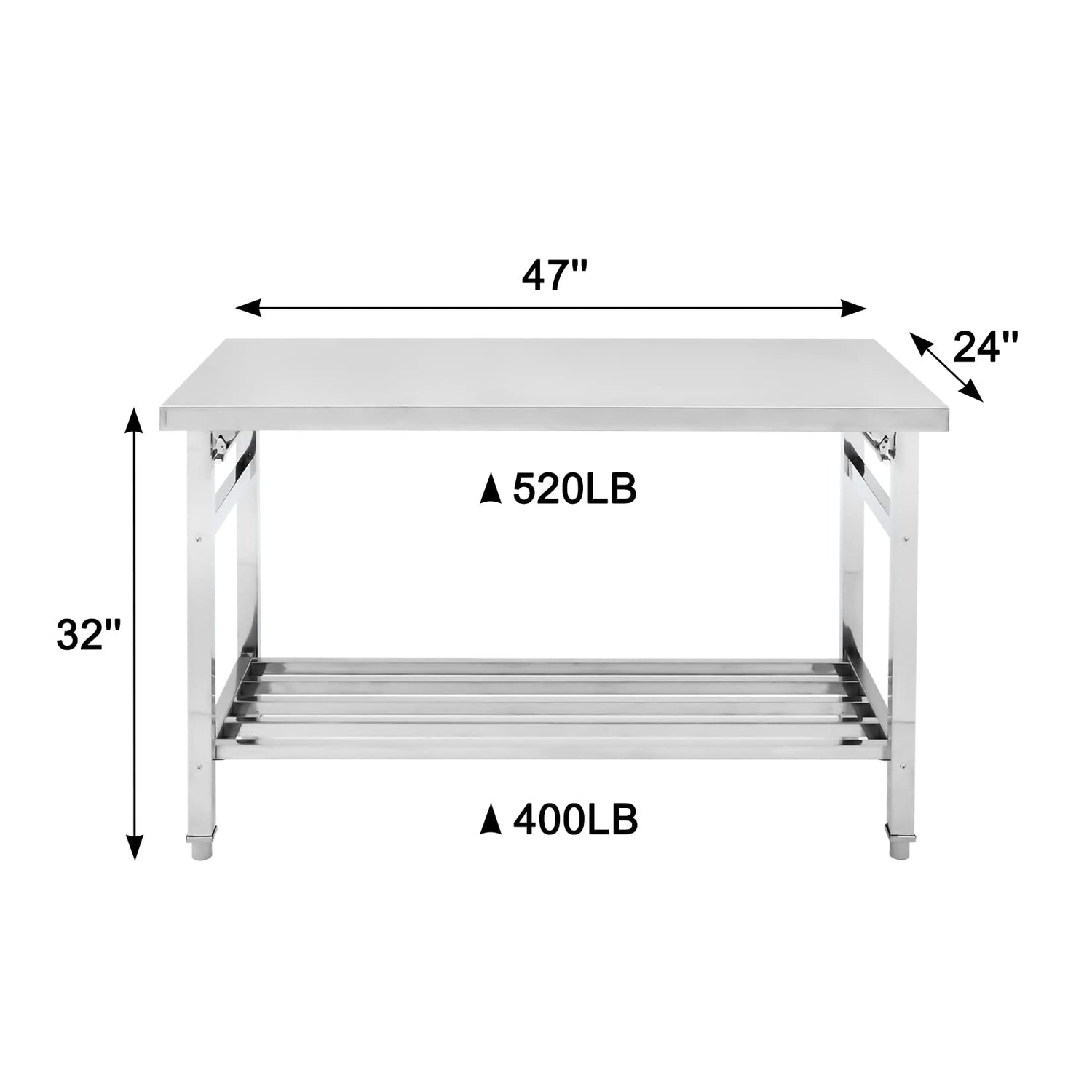 Stainless Steel Workbench for Prep & Work, 47" X 24" Folding Work Table Kitchen Prep Table, Metal Camping Table, Commercial Heavy Duty Table with Undershelf for Home and Restaurant