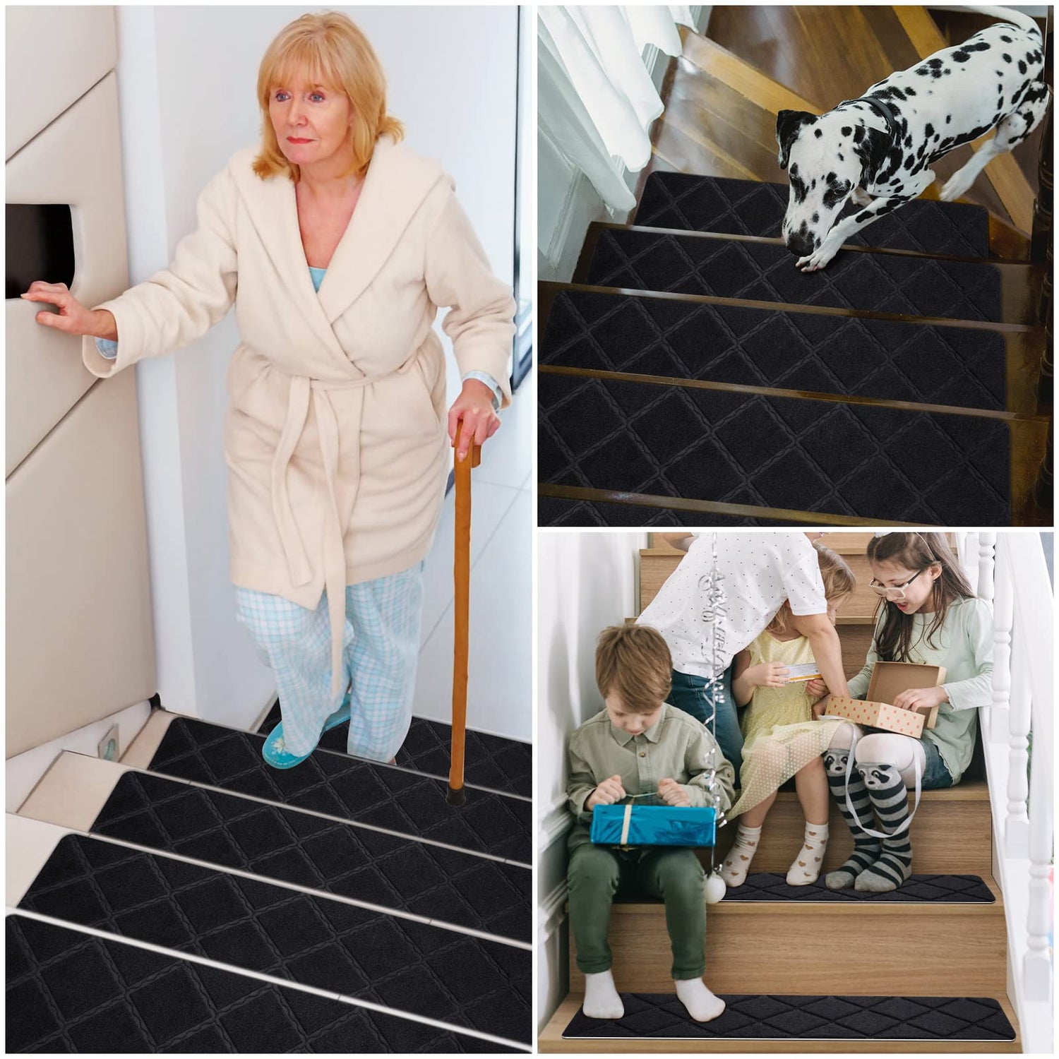 Stair Treads for Wooden Steps 15pcs - 8x30in Carpet Stairs Runner Indoor Non-Slip Stair Mats for Kids Elders and Pets