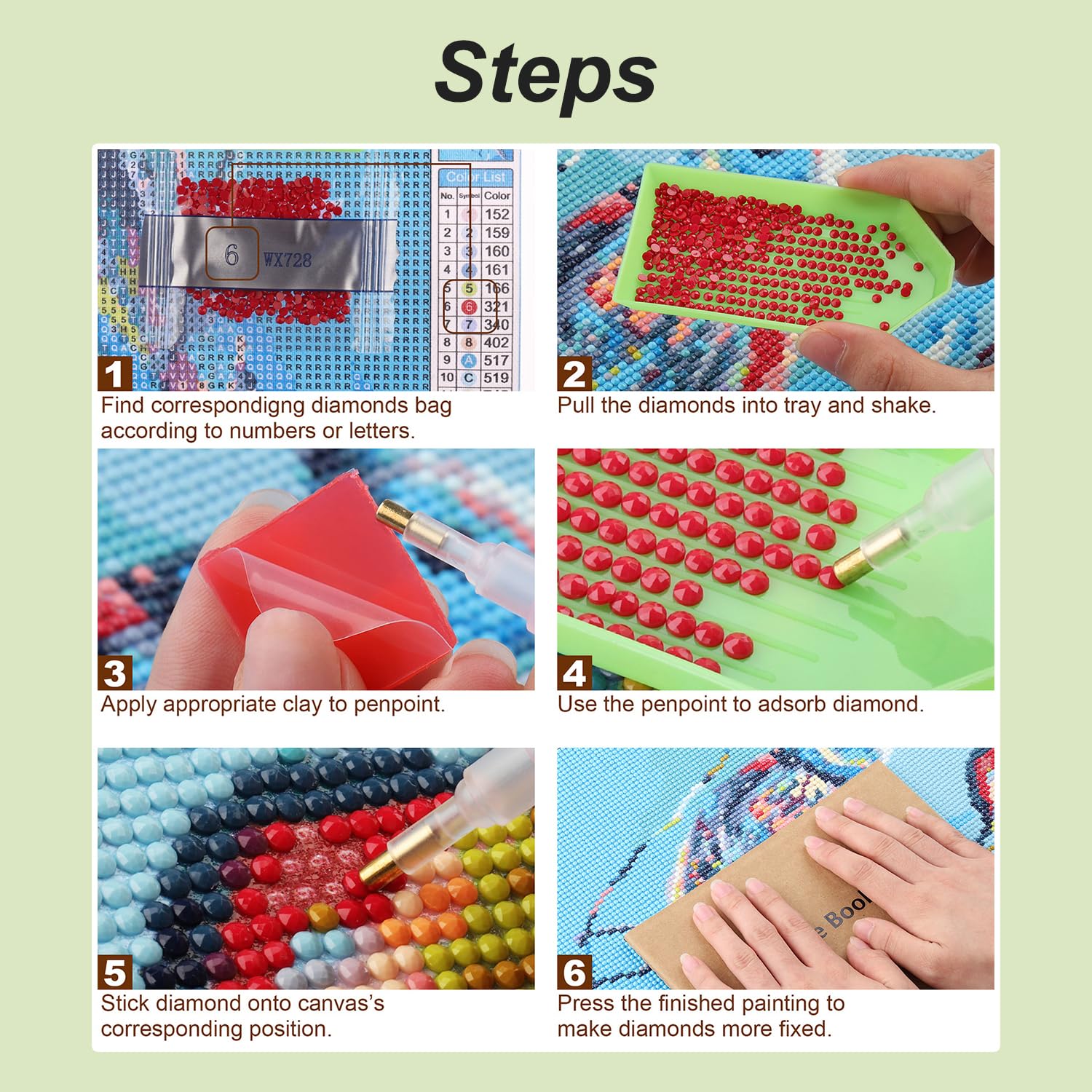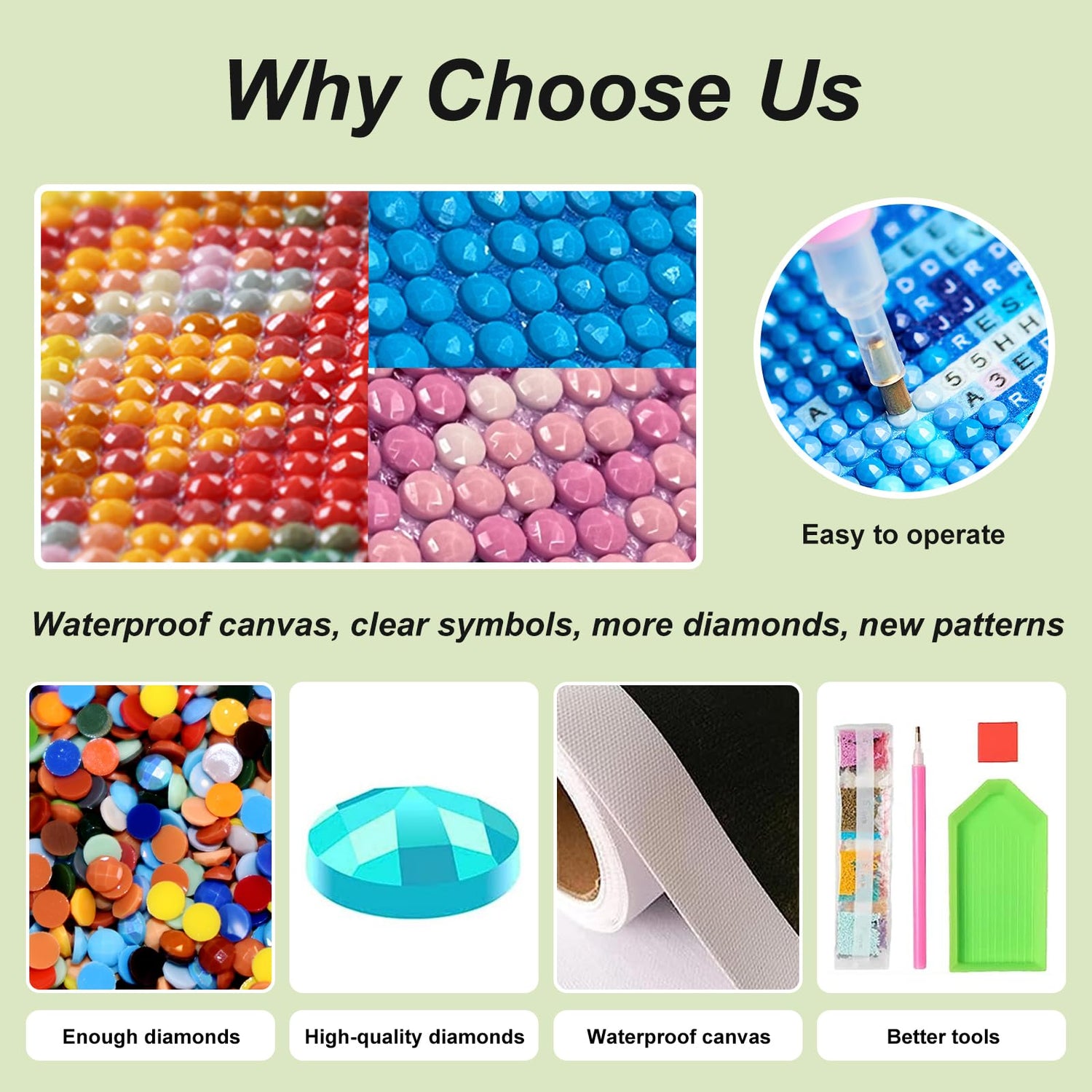 - 【ECO-FRIENDLY CANVAS】Diamond Painting Kits use high clear printing oil canvas, non-toxic, waterproof, environmental protected, will be never fade, making your room more vivifying and Shining in the light