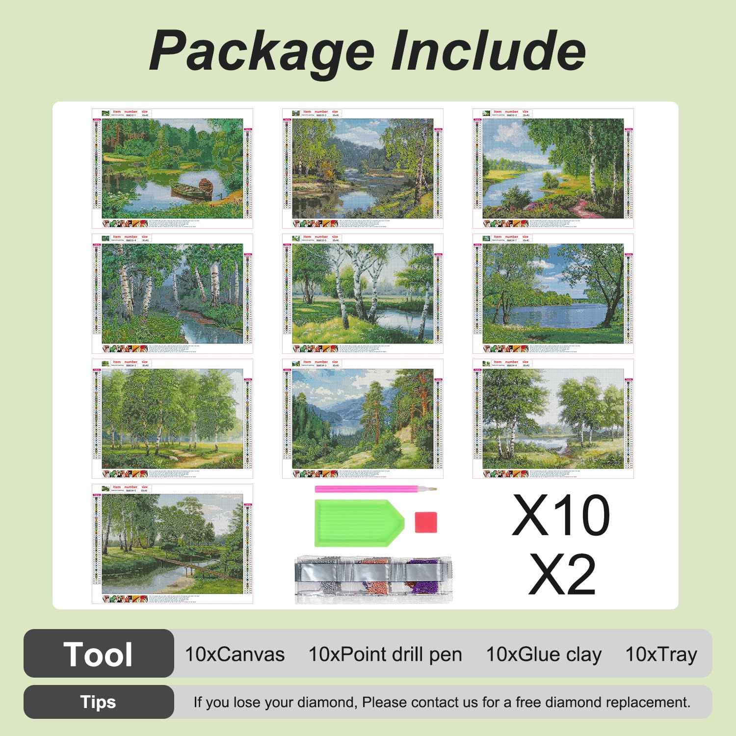 Stalente Diamond Painting Kits for Adults, 10 Pack 5D Diamond Art Kits for Beginners Round Full Drill Diamond Painting for Home Wall Decoration Gift 12×16inch, Natural Landscape Forest