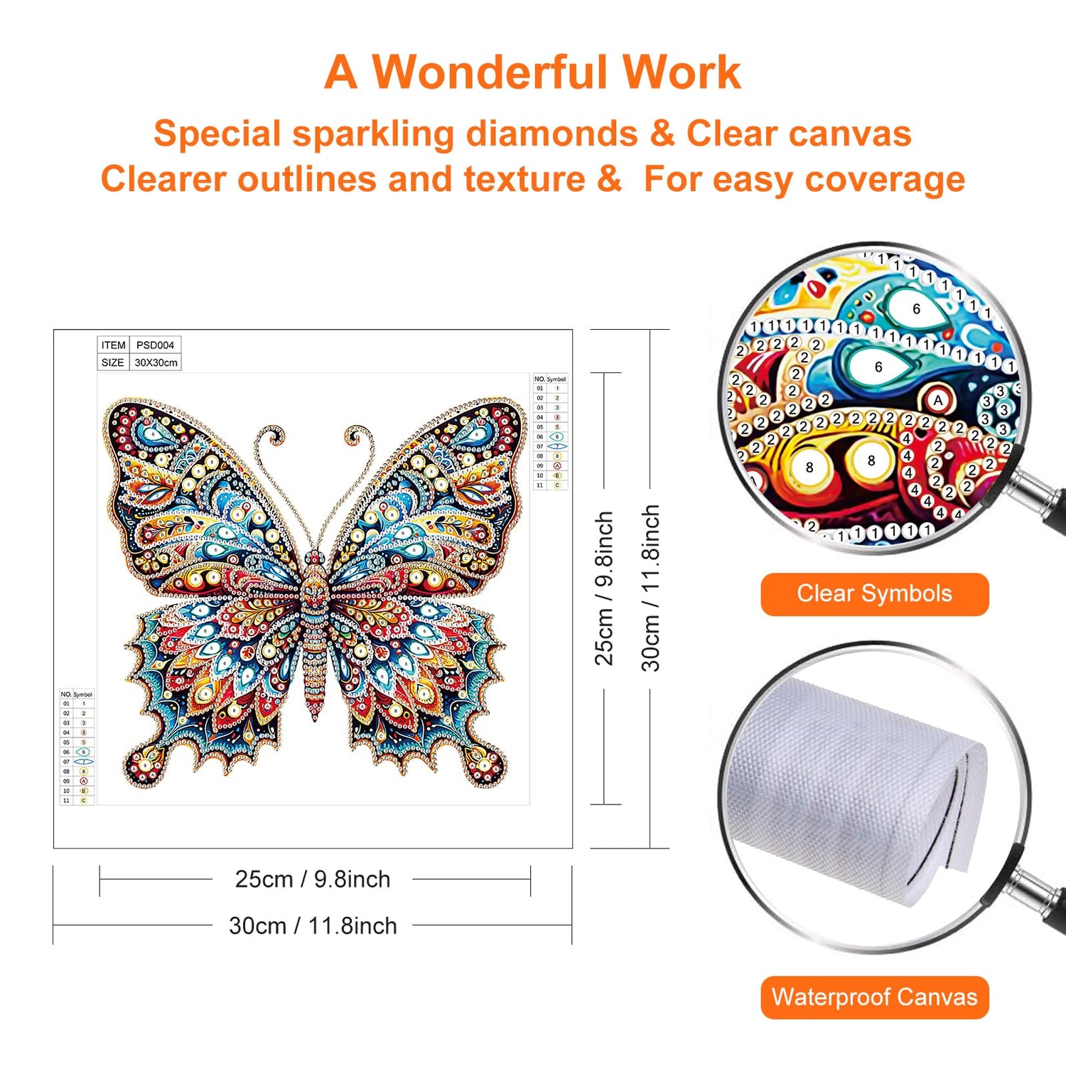 Stalente Diamond Painting Kits for Adults, 5D Special Shape Diamond Art Kits for Beginners, Crystal Rhinestones Diamond Painting for Home Wall Decoration Gift 12×12inch, Butterfly