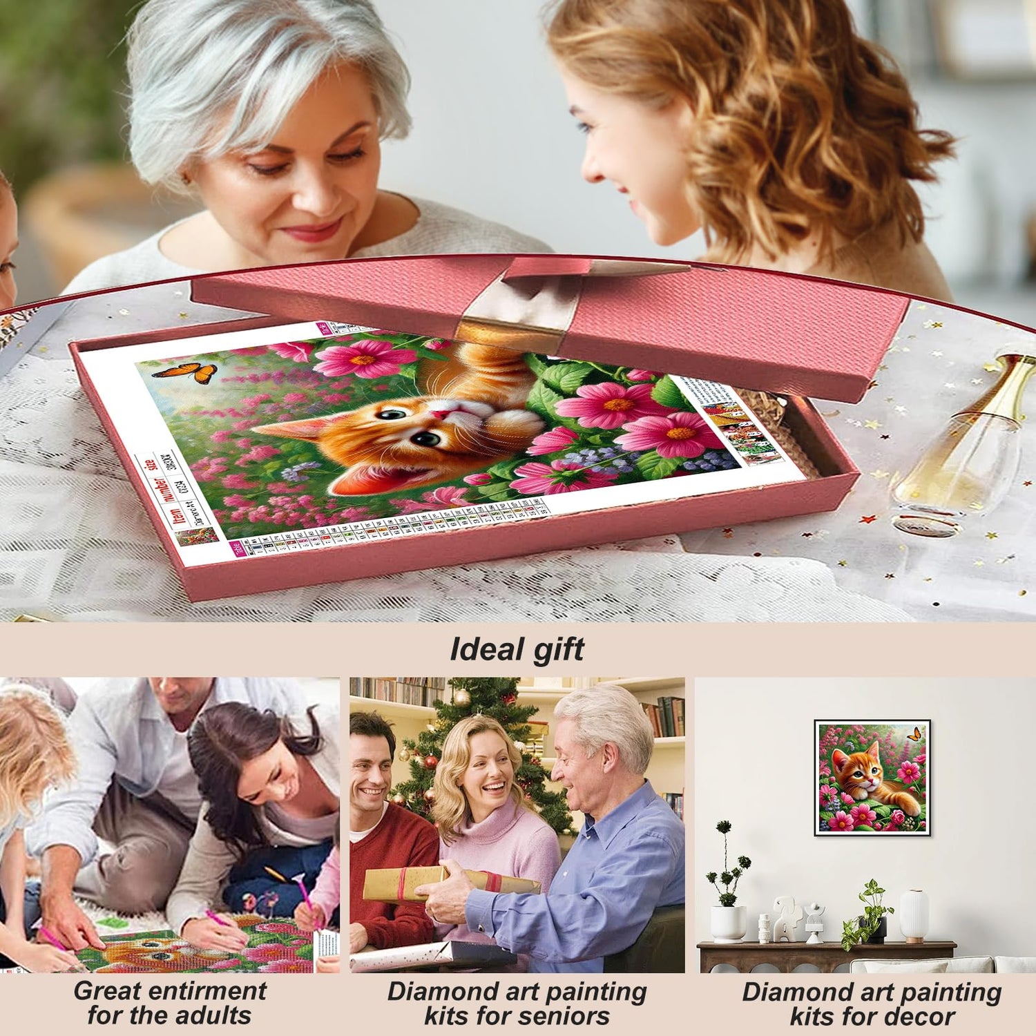 - 【FULL DRILL】Cat Diamond Painting Kits for Adults, round diamonds cover the whole picture, making the picture more shiny and realistic, it is the most popular DIY decoration at the moment. If you have enough time and patience and like challenging project, this is totally for you
