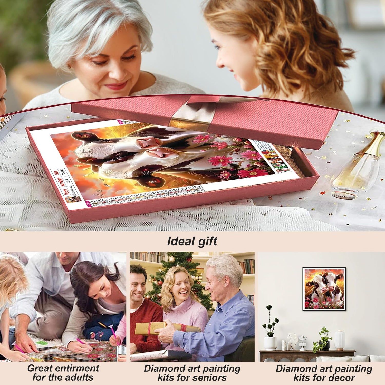 - 【FULL DRILL】Cow Diamond Painting Kits for Adults, round diamonds cover the whole picture, making the picture more shiny and realistic, it is the most popular DIY decoration at the moment. If you have enough time and patience and like challenging project, this is totally for you