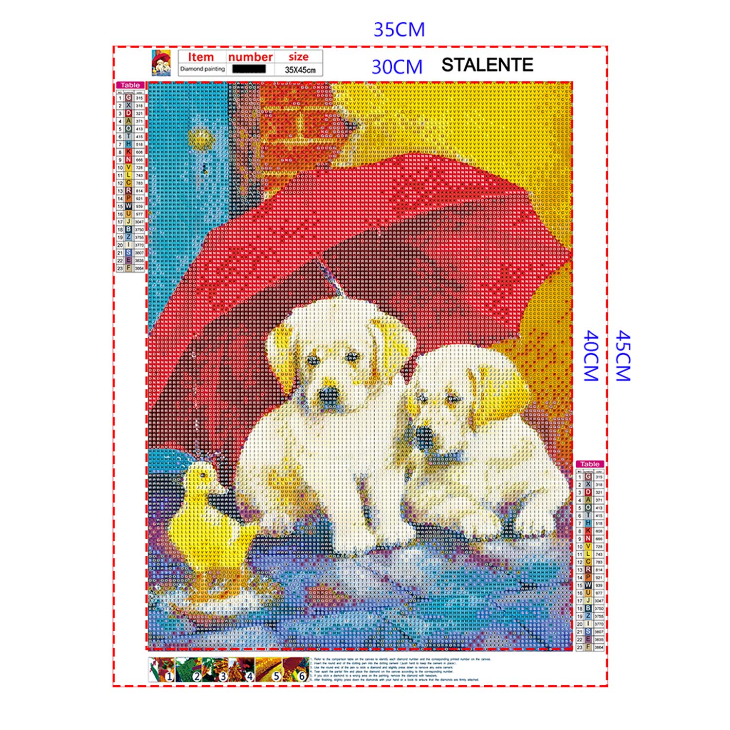 Stalente Diamond Painting Kits for Adults, Diamond Painting Dog, Diamond Art Animal, DIY 5D Round Full Drill Diamond Art Dog and Duck Craft for Home Decor 13.7X17.7in, Umbrella