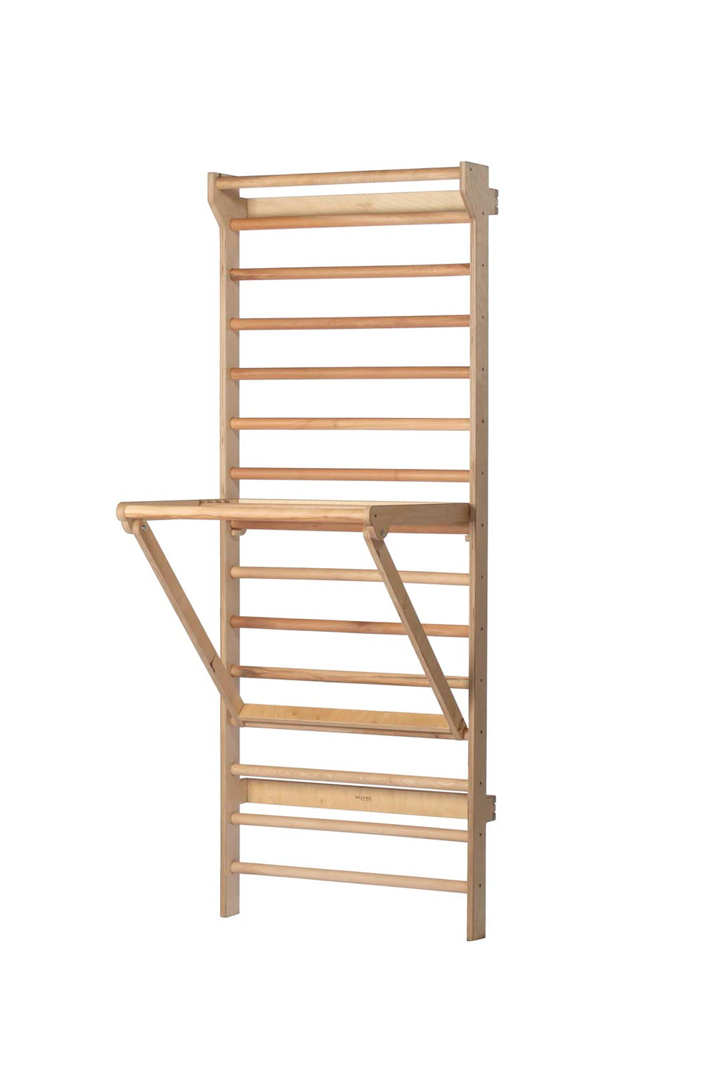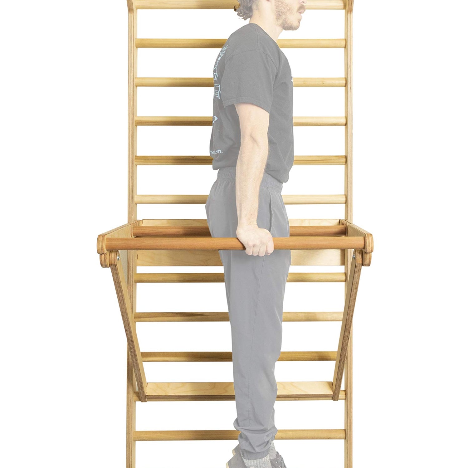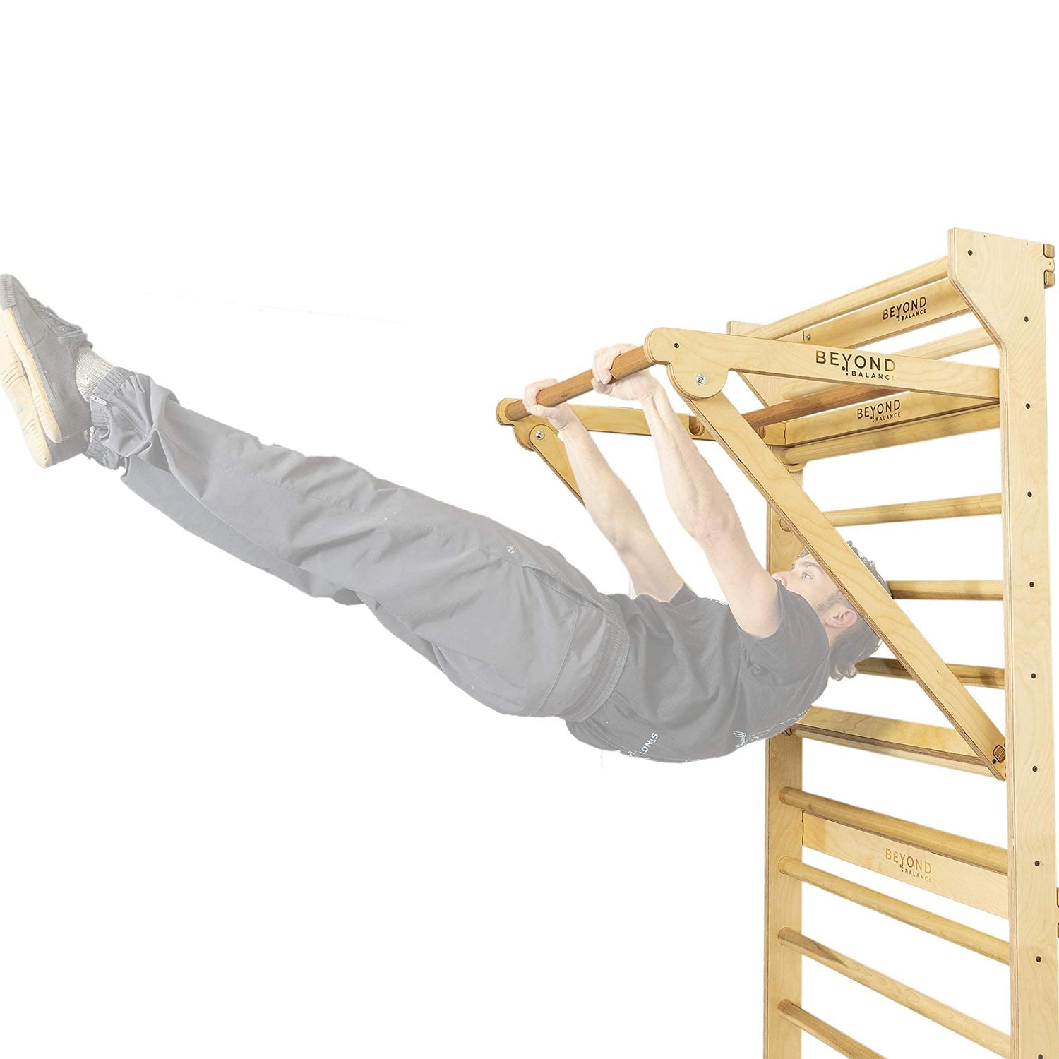 Stall Bar Training Tower: Swedish Ladder with Adjustable Pull-Up Dip Bar Attachment (1.5" Round, Beech Rungs)