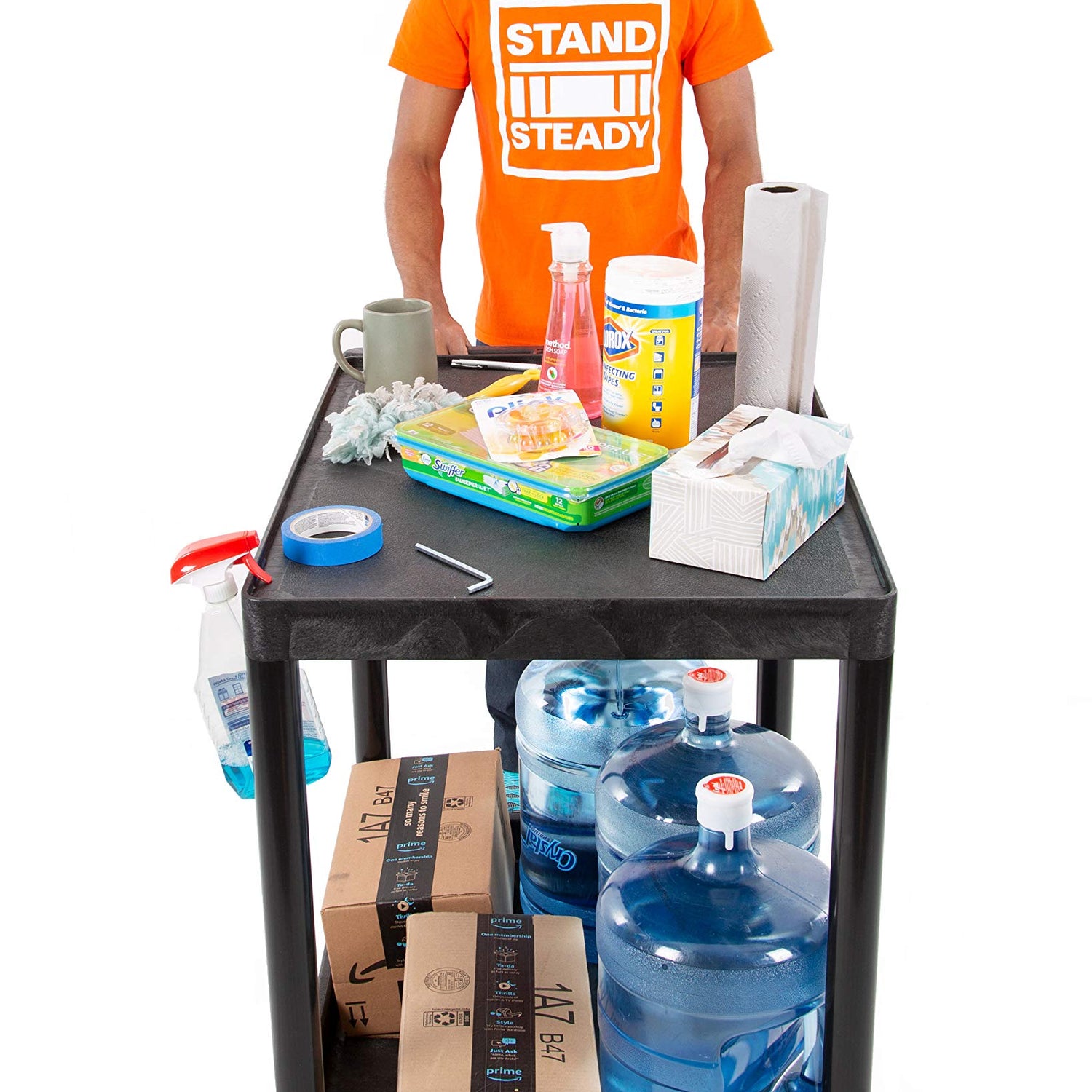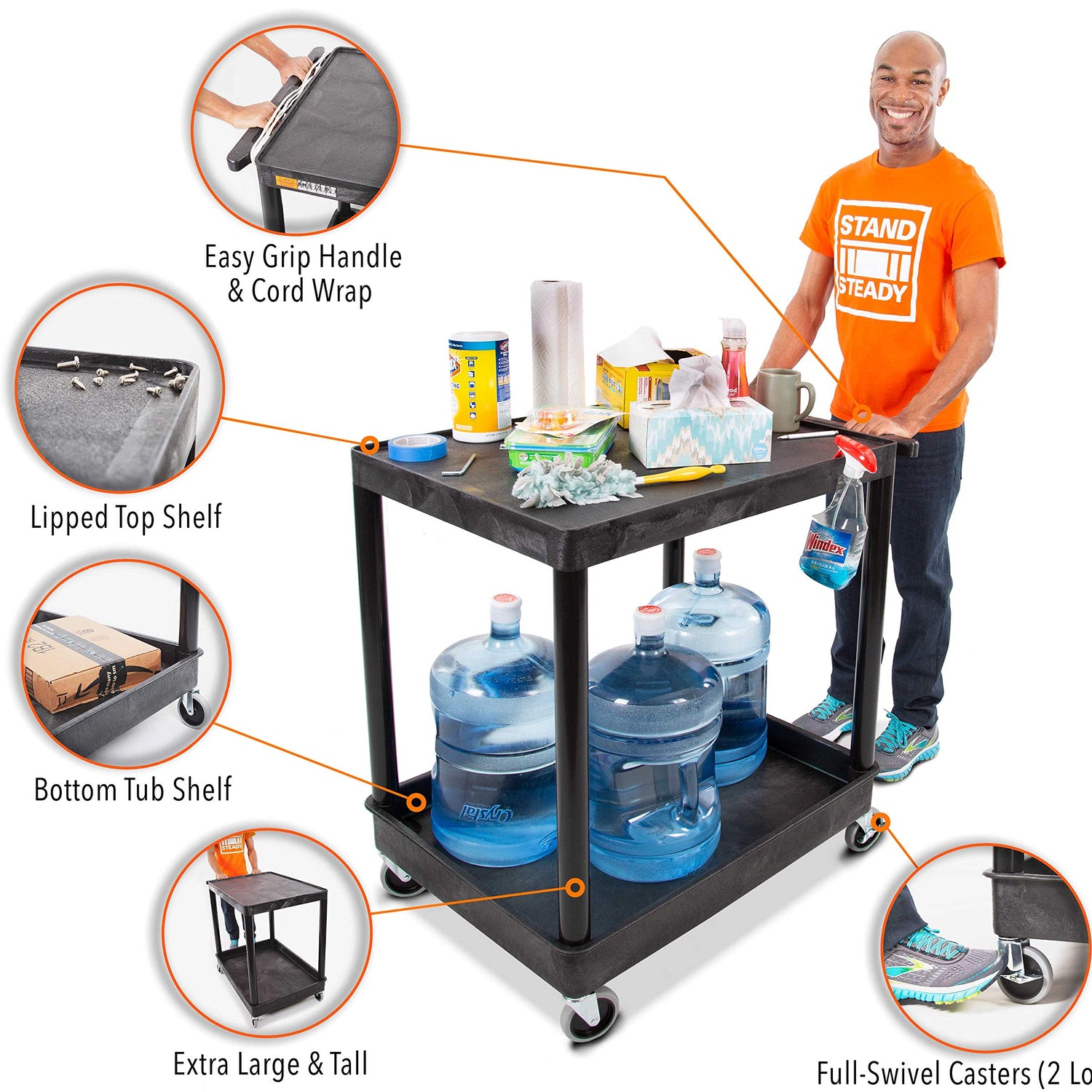 Stand Steady Tubstr Large 2 Shelf Utility Cart Supports Up to 200 lbs - Heavy Duty Hybrid Tub & Flat Shelf Cart, Rolling Storage Cart & Tool Cart for