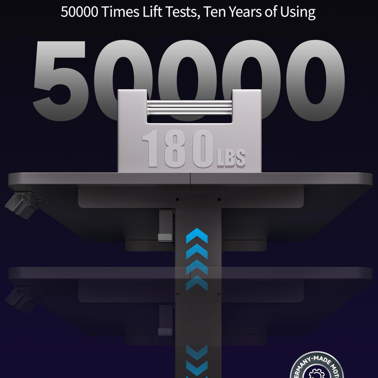 - Stable & Sturdy Design: This electric standing desk boasts a powerful motor that lifts at 0.8" per second and has been rigorously tested 20,000 times. This office desk can securely hold up to 132 lbs of weight. With safety as our priority, this rating reflects a conservative estimate - our real-world testing proves a 180lbs load capacity.