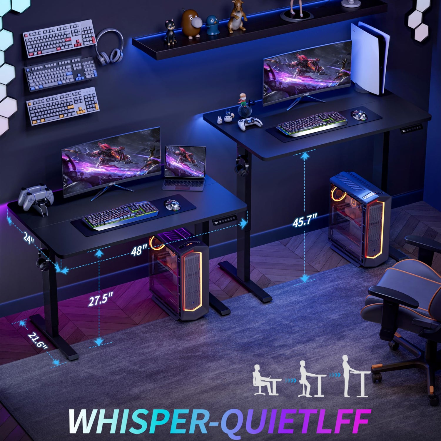 - Height Adjust Smoothly: This adjustable standing desk with 3 memory presets, you can easily save and recall 3 customizable heights for sitting and standing with a single button press. The escritorio adjusts smoothly from 27.5" to 45.7"with low noise <48 dB. So that won't influence families and pet rest.