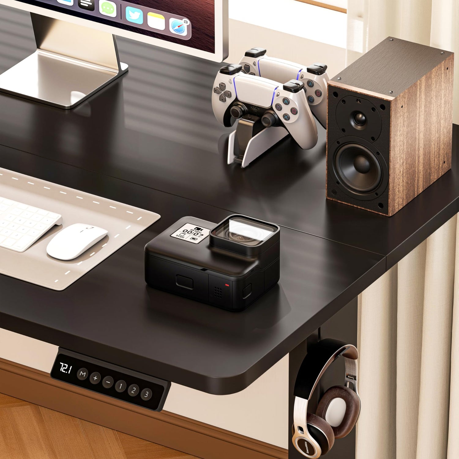 - Ergonomic 48"x24" Desktop: This sit stand desk at least can accommodate with one monitors and a laptop, the spacious desktop enhances work efficiency. That 48inch desk avilable with white,black,rustic color,features a unique wooden pattern, two headphone hooks.