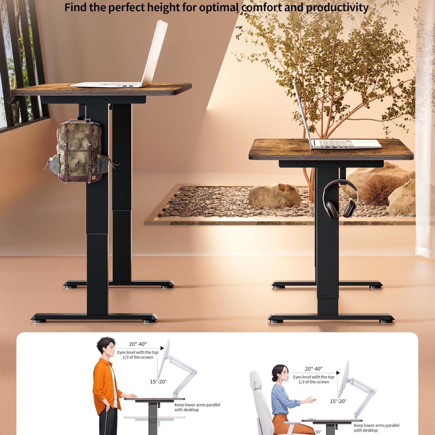 - Ergonomic 48"x24" Desktop: This sit stand desk at least can accommodate with one monitors and a laptop, the spacious desktop enhances work efficiency. That 48inch desk avilable with white,black,rustic color,features a unique wooden pattern, two headphone hooks.