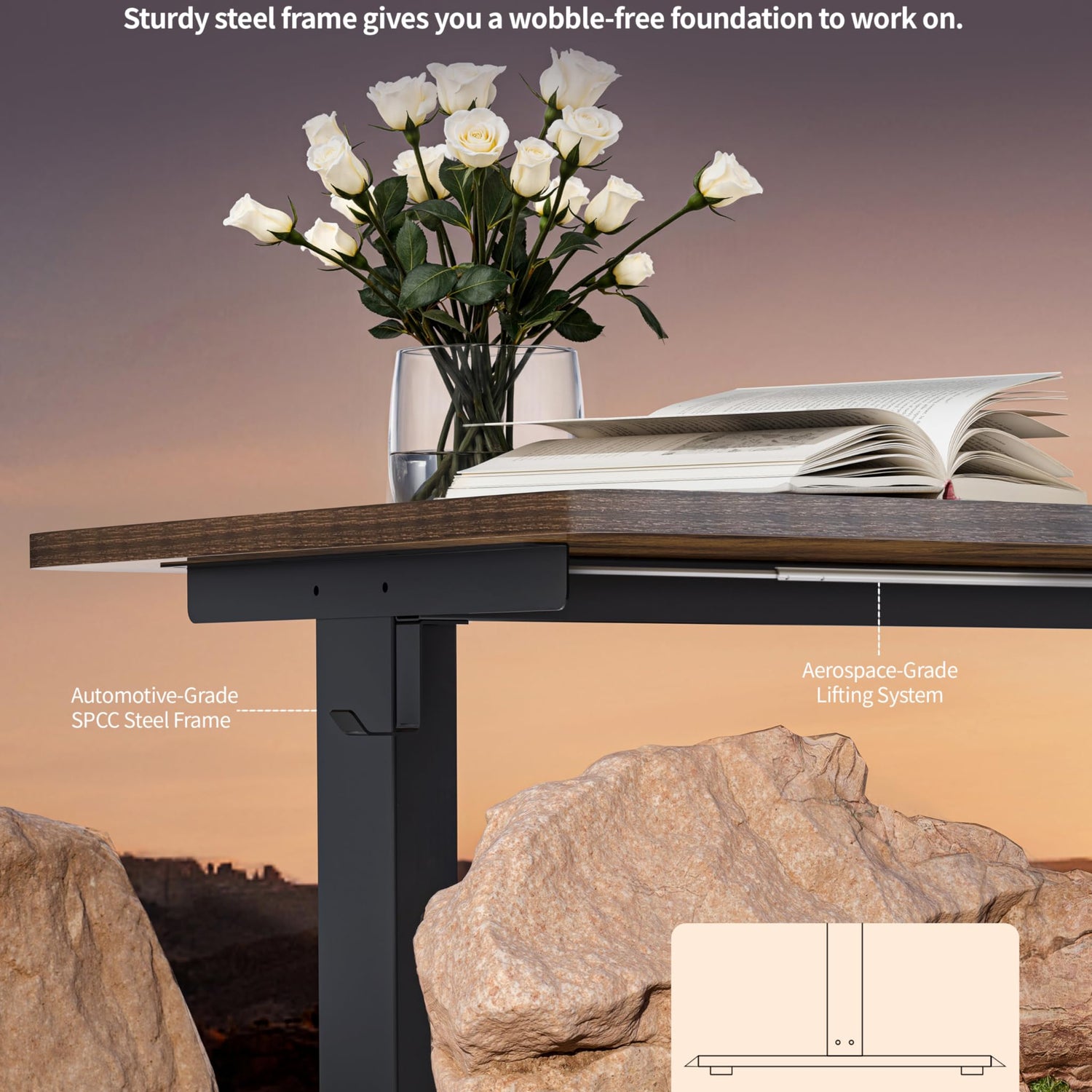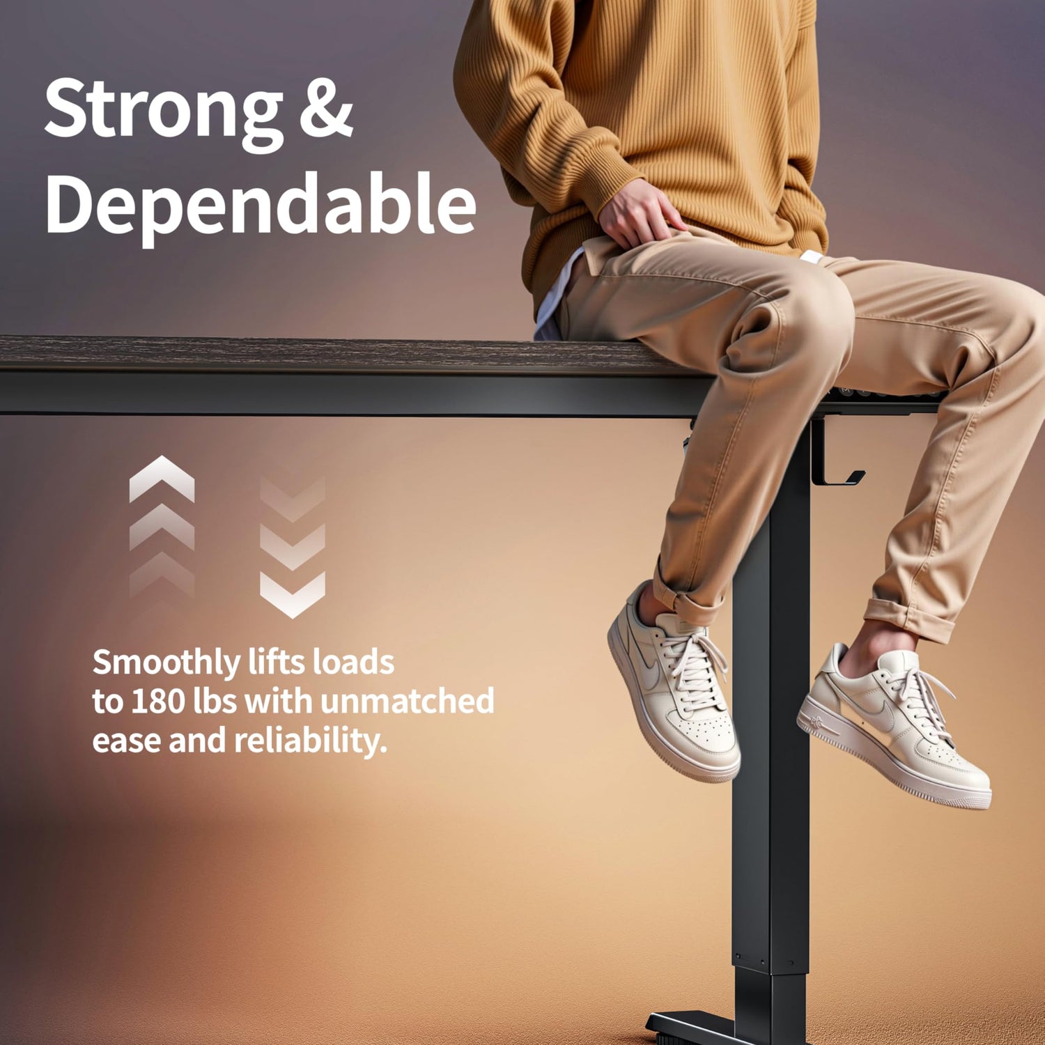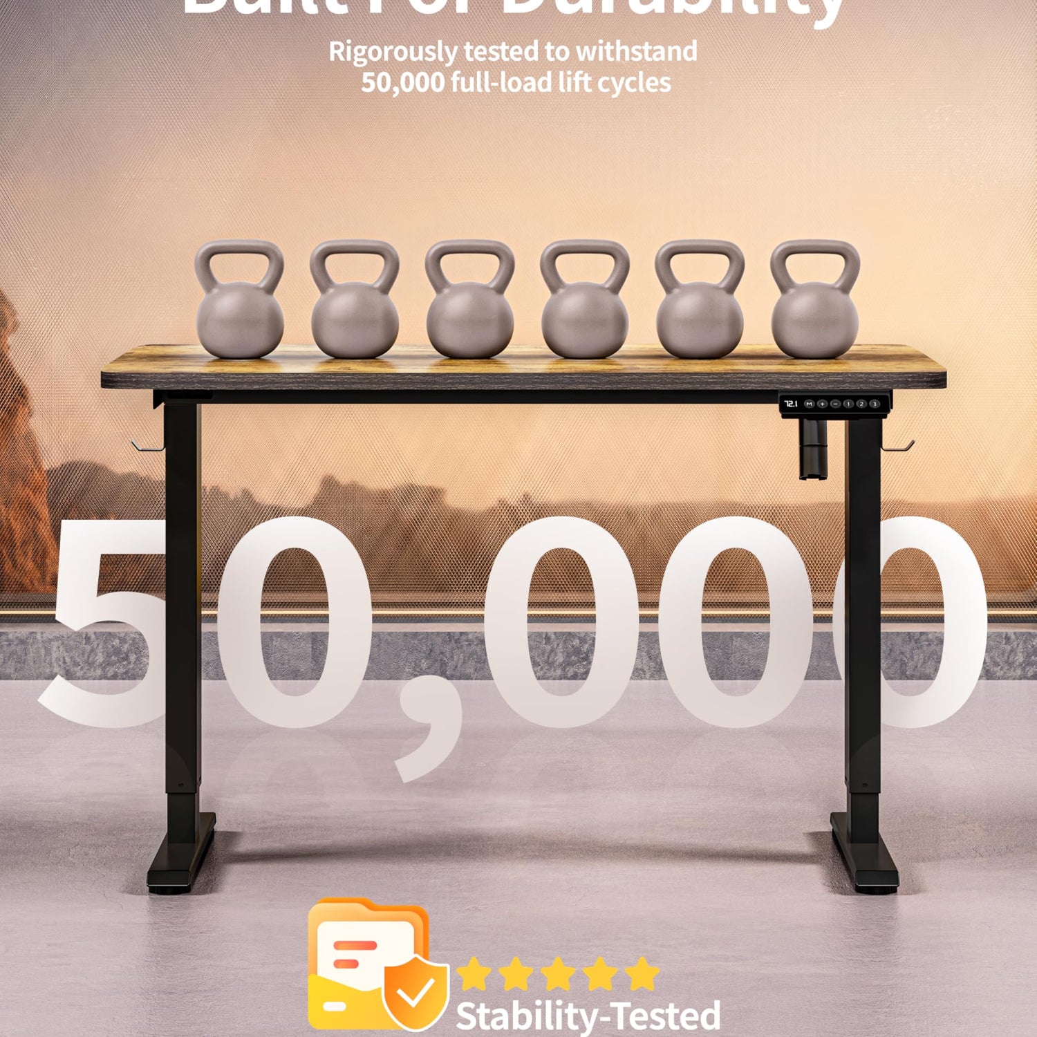 - Stable & Sturdy Design: This electric standing desk boasts a powerful motor that lifts at 0.8" per second and has been rigorously tested 20,000 times. This office desk can securely hold up to 132 lbs of weight. With safety as our priority, this rating reflects a conservative estimate - our real-world testing proves a 180lbs load capacity.