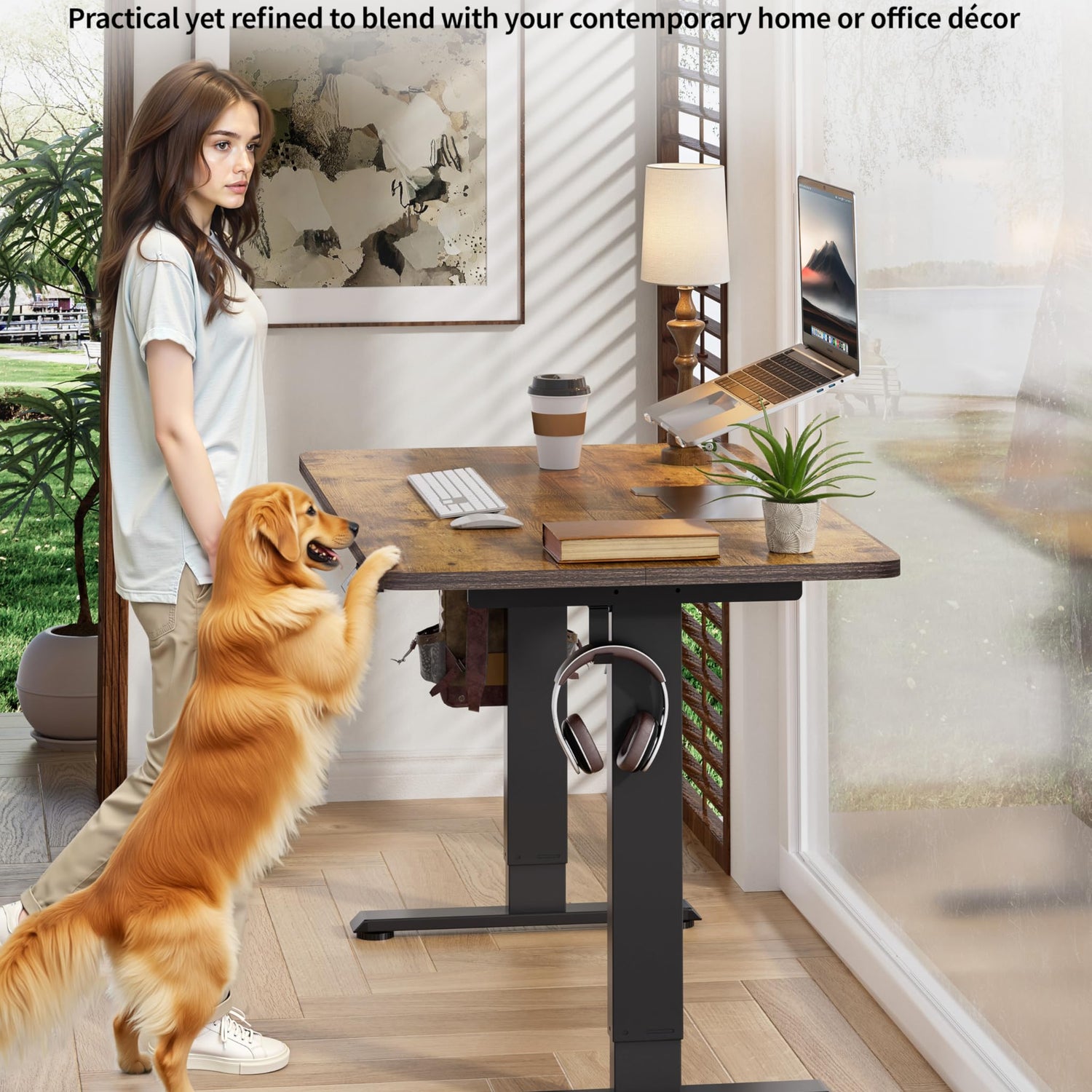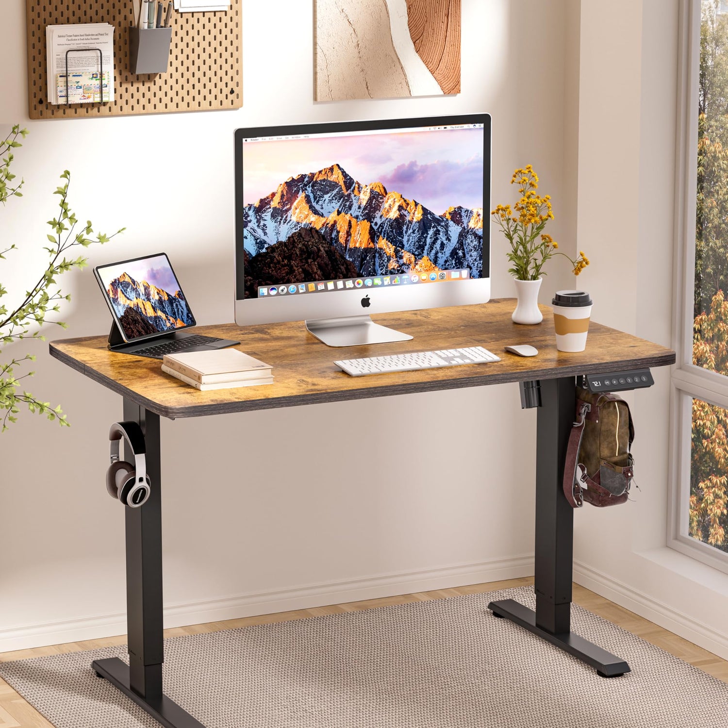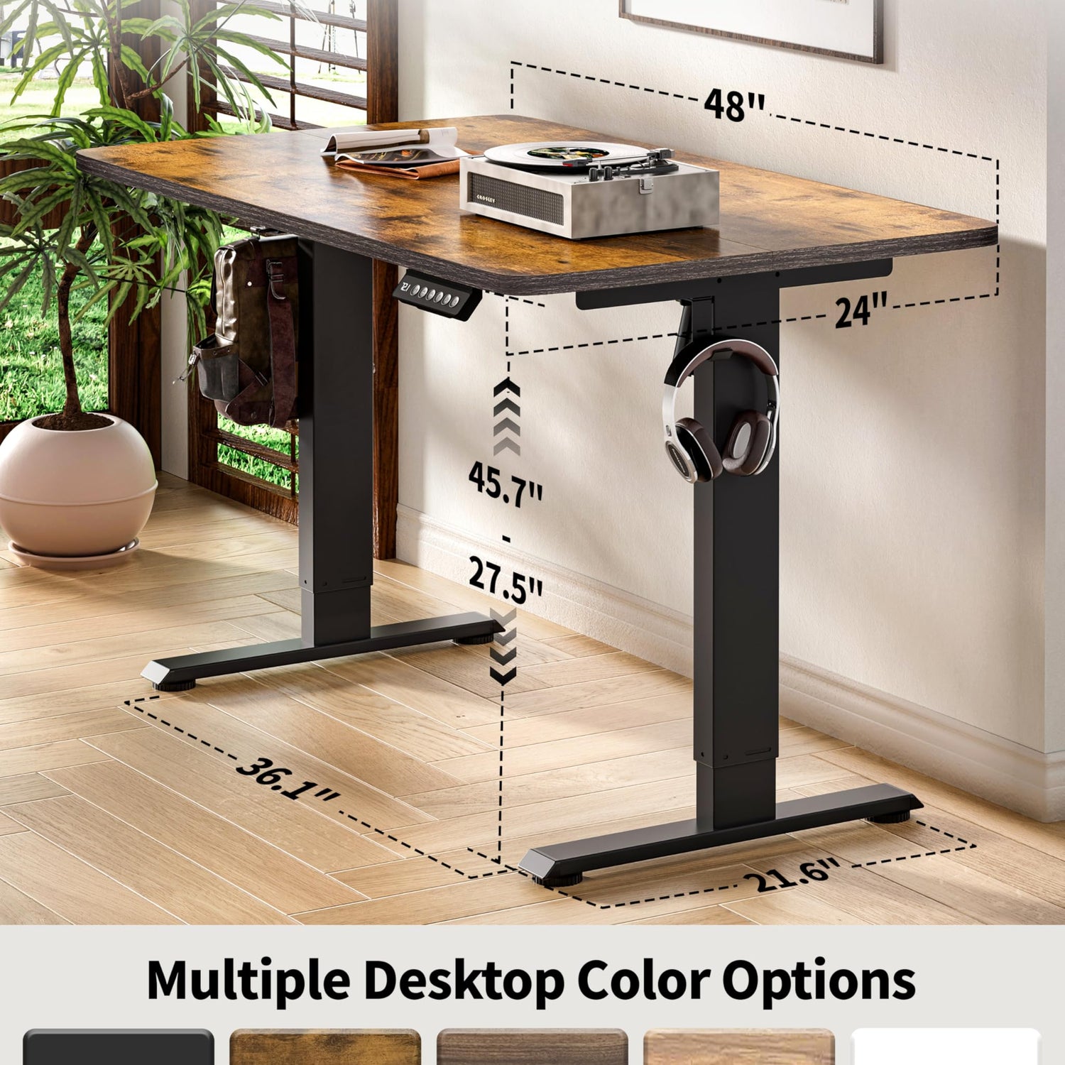 Standing Desk Electric Adjustable Computer Desk-Stand up Desk Office Gaming Home Office Memory Desks 48x24 inches Black Frame/Rustic Brown Top