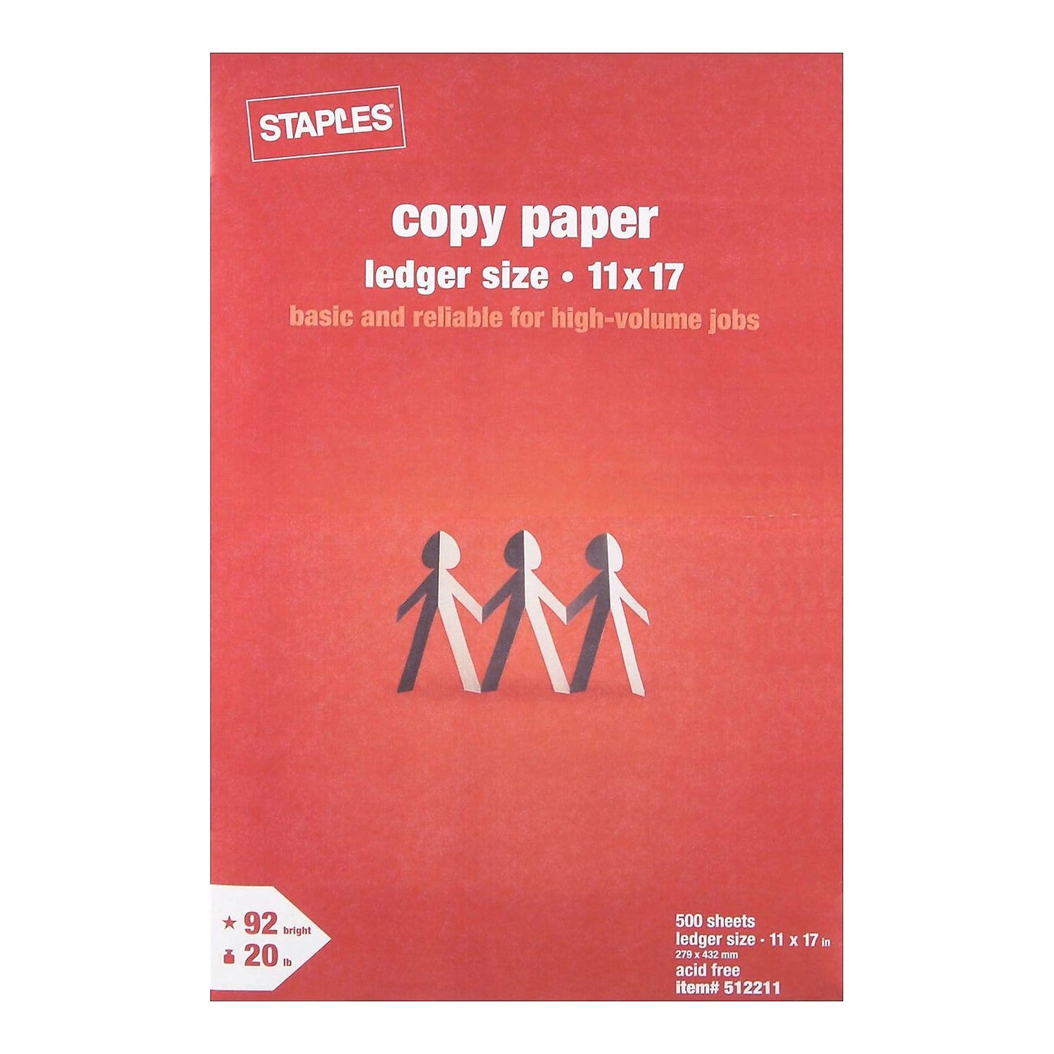 Staples 512211 11-Inch X 17-Inch Copy Paper 20 Lbs 92 Brightness 500/Ream (190450)