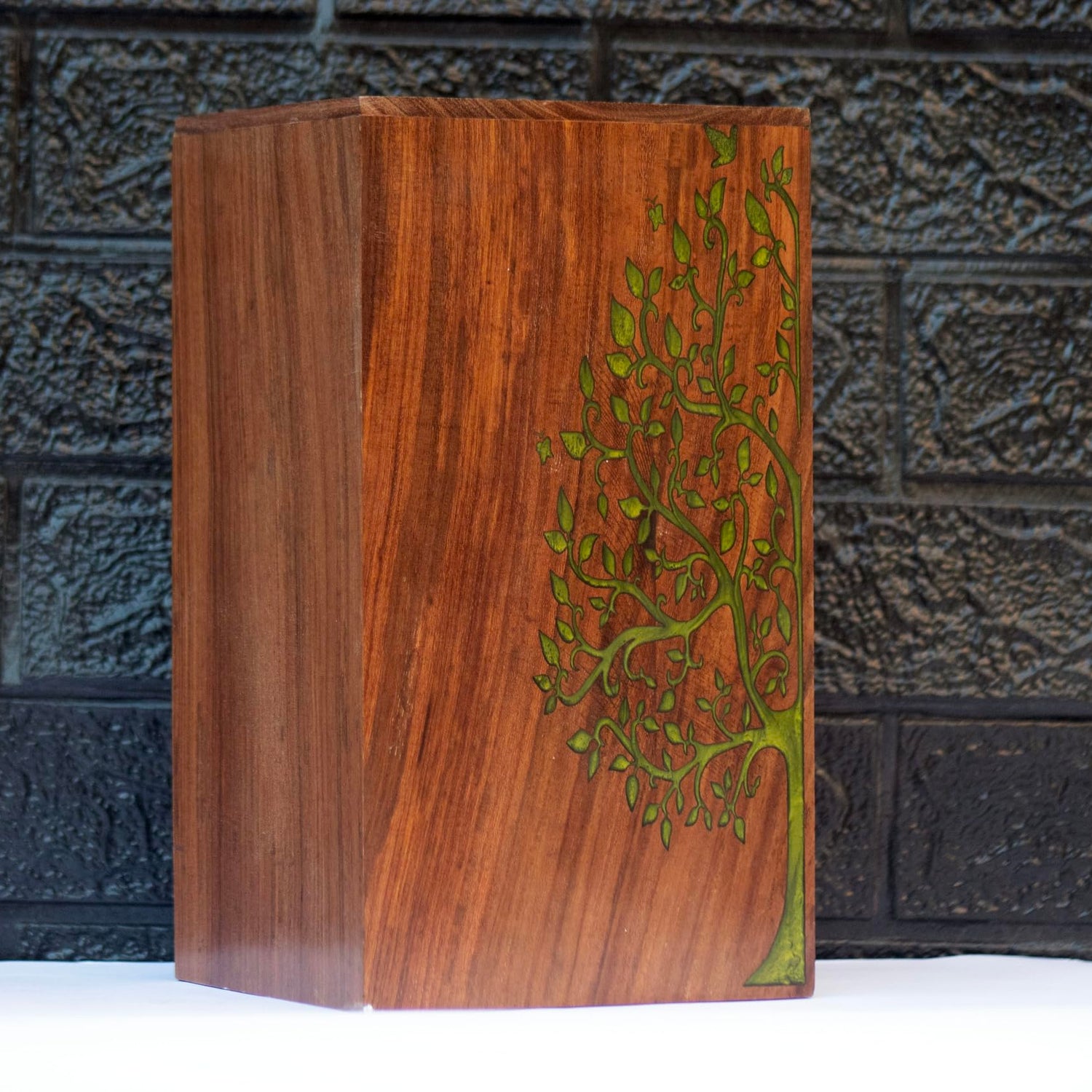 - QUALITY - Wood Urns For Human Ashes are made of Natural wood Legally Procured Indian Rosewood, precisely Hand carved with fine details, designed by our Skilled and Rare Artisans in India. Wooden Funeral Urn box for ashes fit for your needs. Our all Urn has a Sliding Bottom Opening with a screw to keep ashes secured. This funeral adult Burial urn will give your loved one's remains the superior quality they deserve.