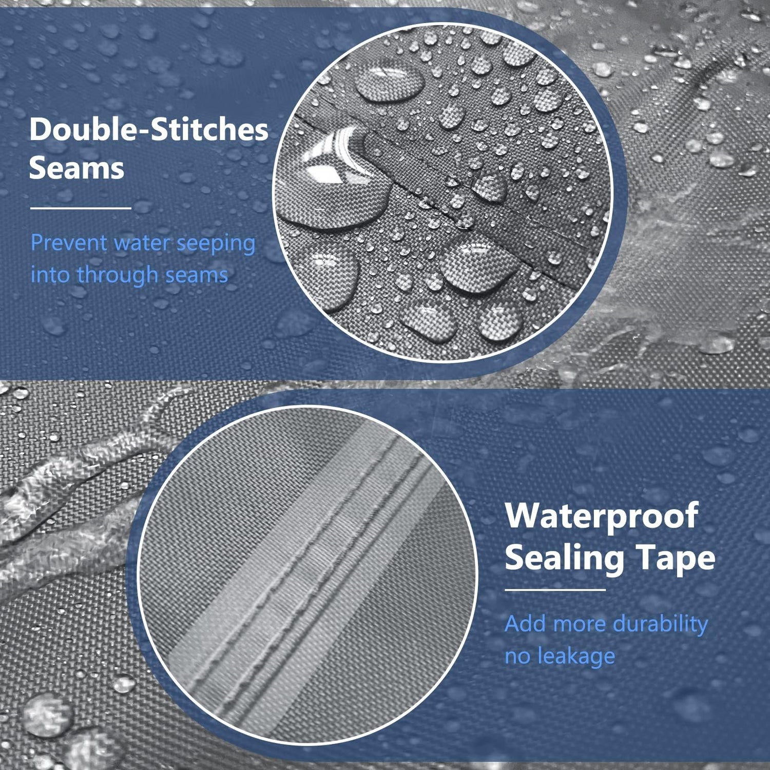 - 【Heavy-Duty Waterproof Furniture Covers】Upgraded waterproof outdoor furniture cover not only added waterproof coating and a waterproof laminated backing, but also added a waterproof pressure-glued at the back seam, which prevent water from seeping through our furniture cover. Keep your outdoor furniture dry before using even in heavy rain days.